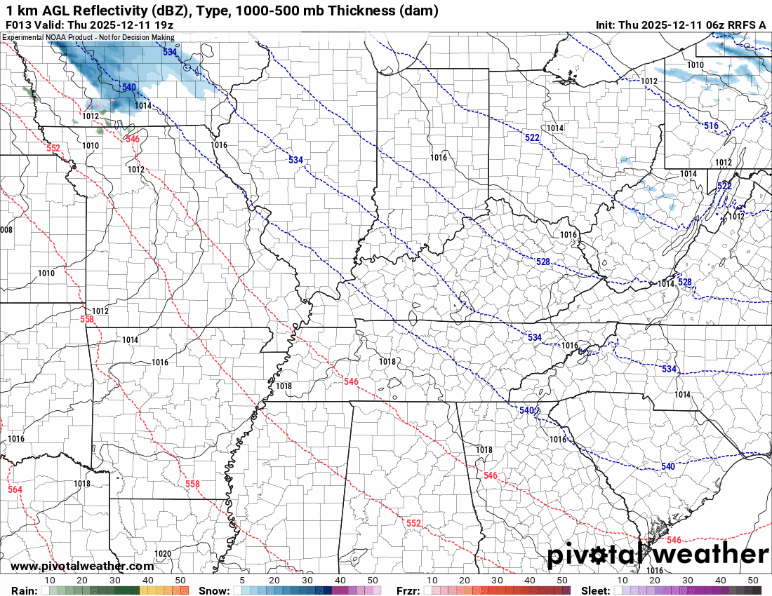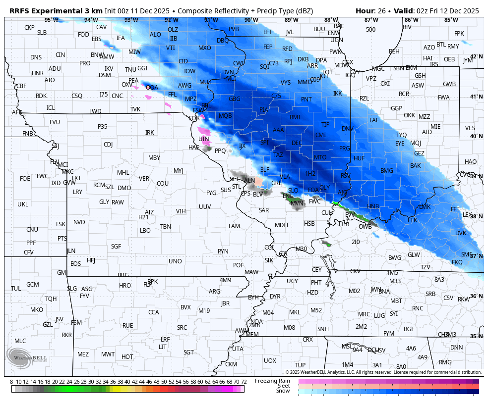 Here is the future-cast radar for tonight from the RRFS model guidance. The blue is snow. It just barely clips my far northern and northeastern counties.
