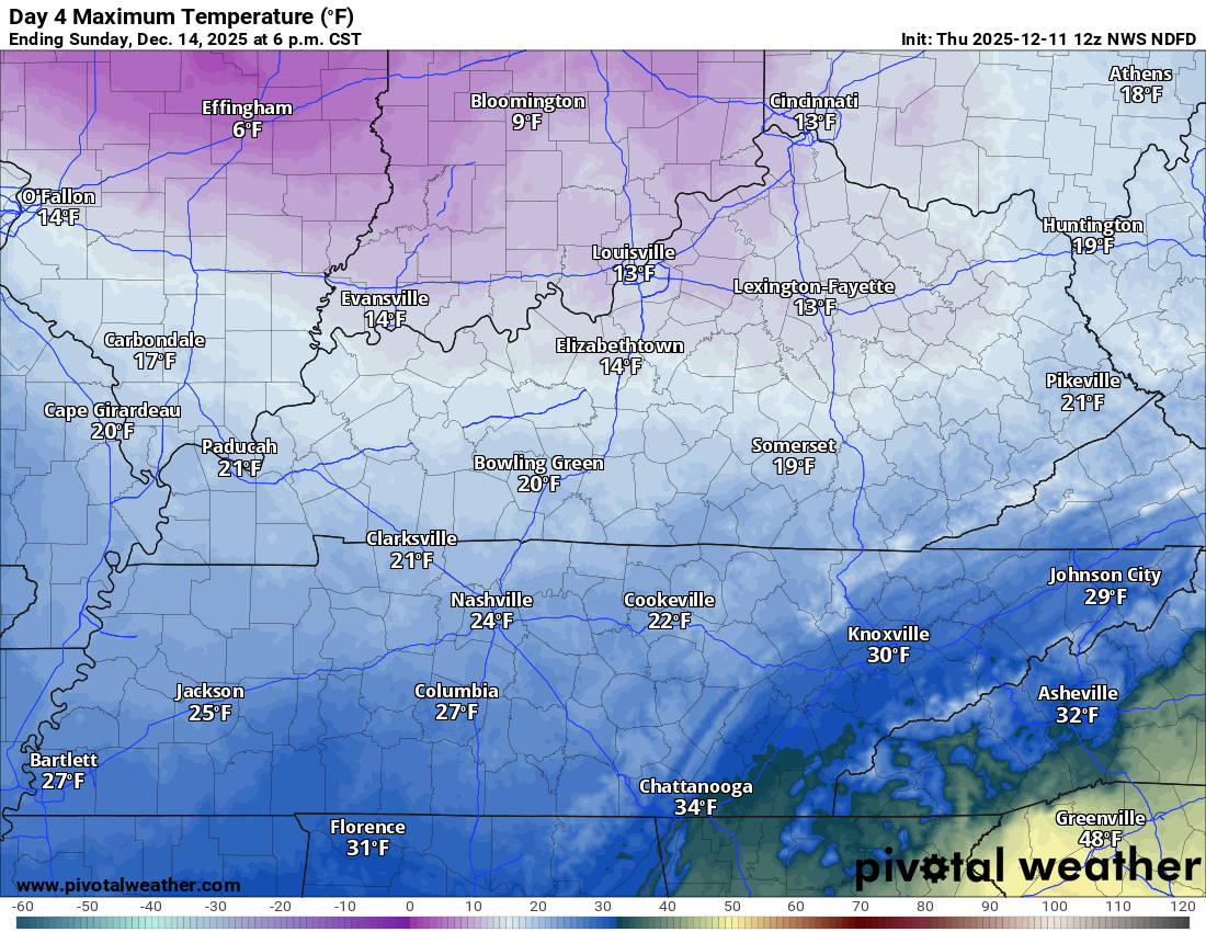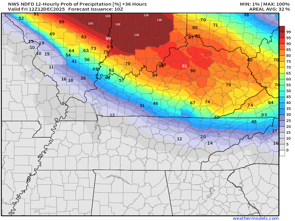 This will bring snow just to our north and east. It may clip my northern counties tonight. Mostly along a line from Mt Vernon, Illinois, to Owensboro, Kentucky.