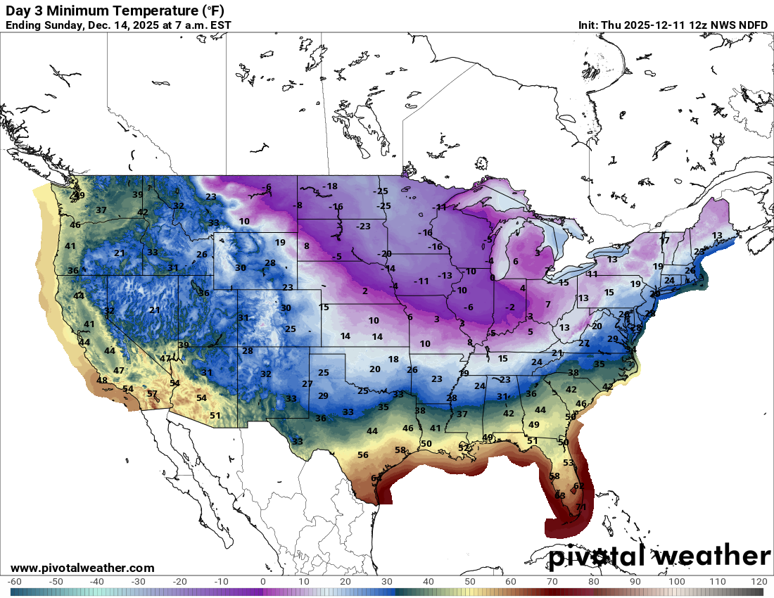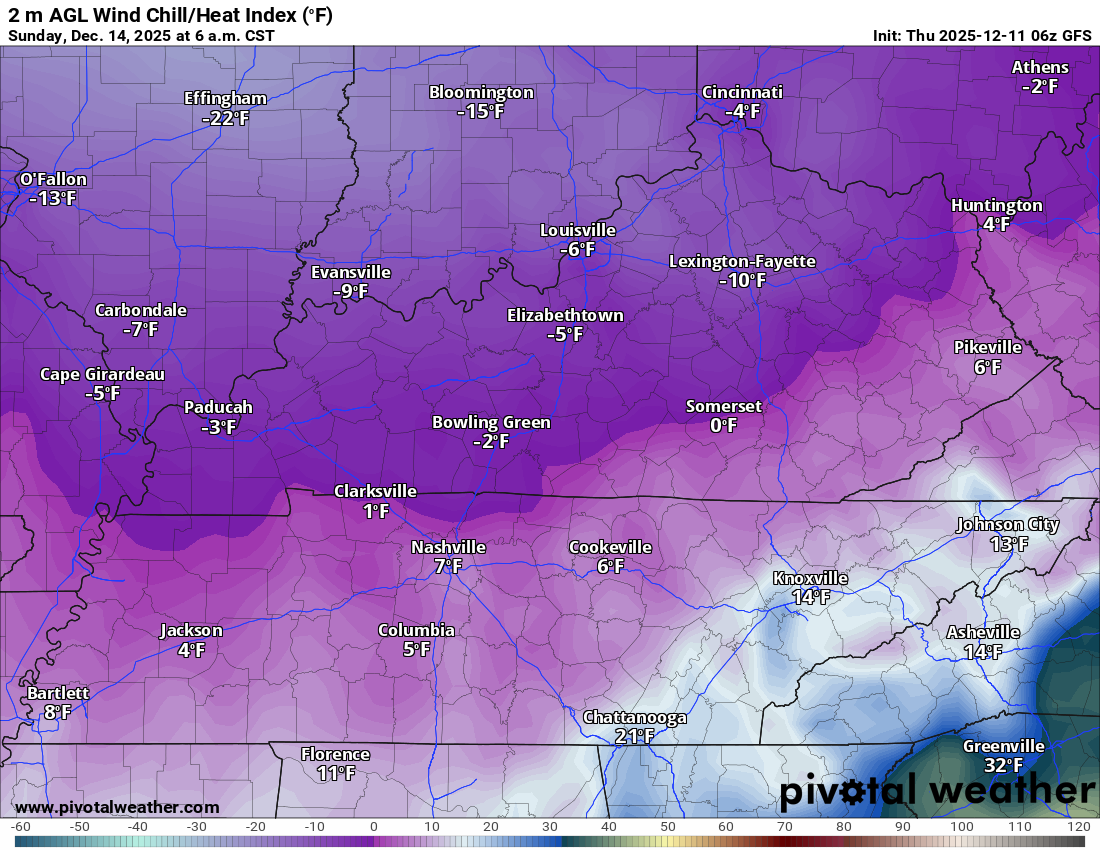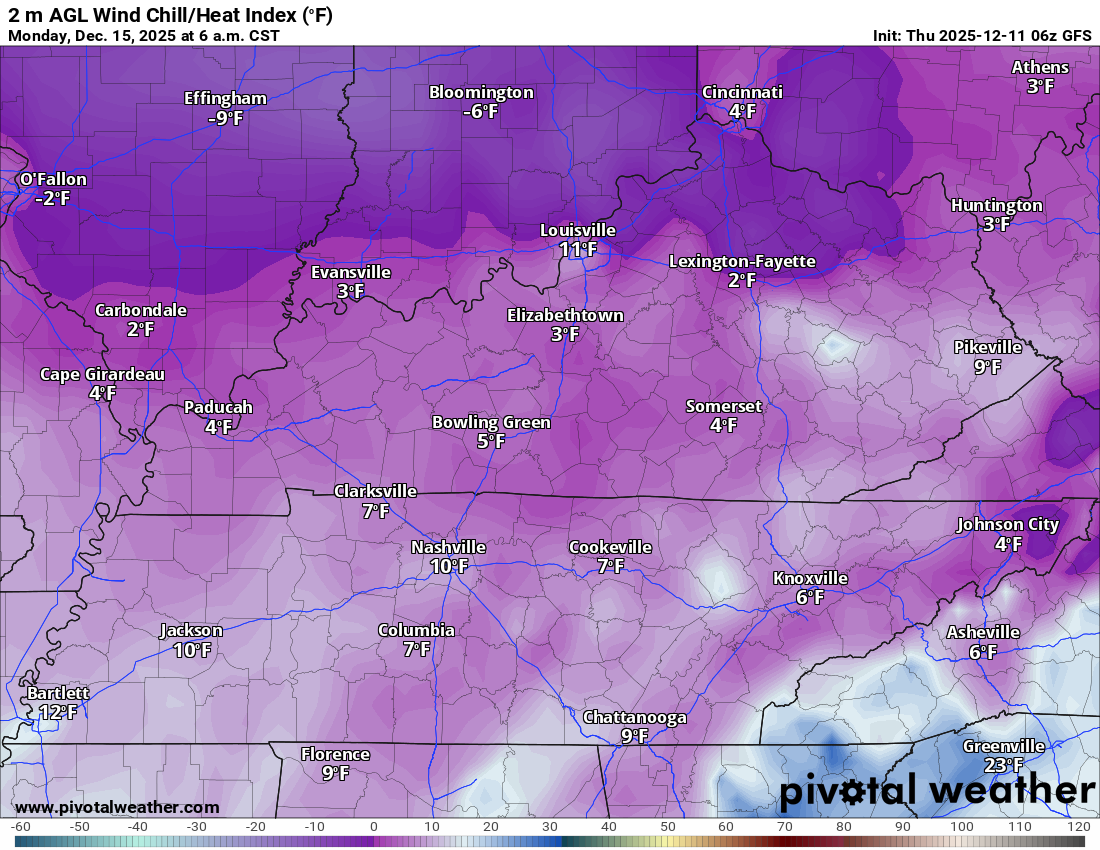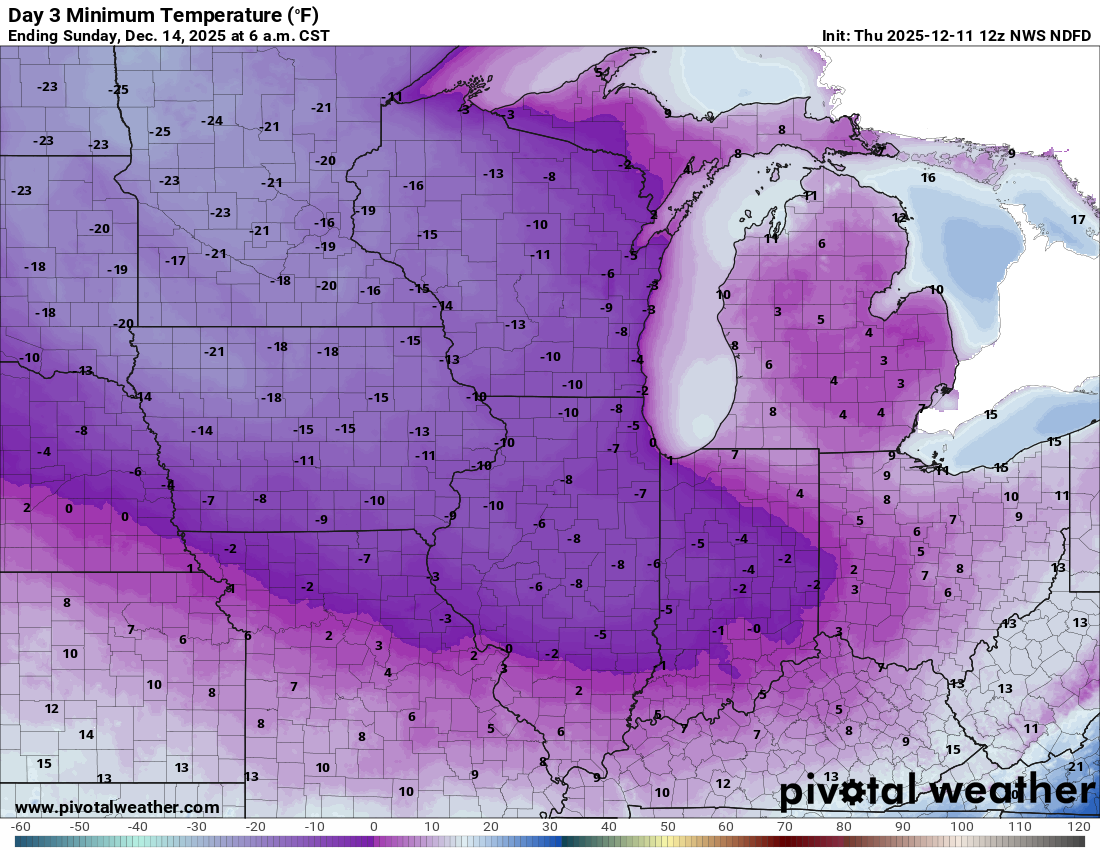 At least it won’t be THIS cold locally. These are actual air temperatures. Wind chill values will be even colder!