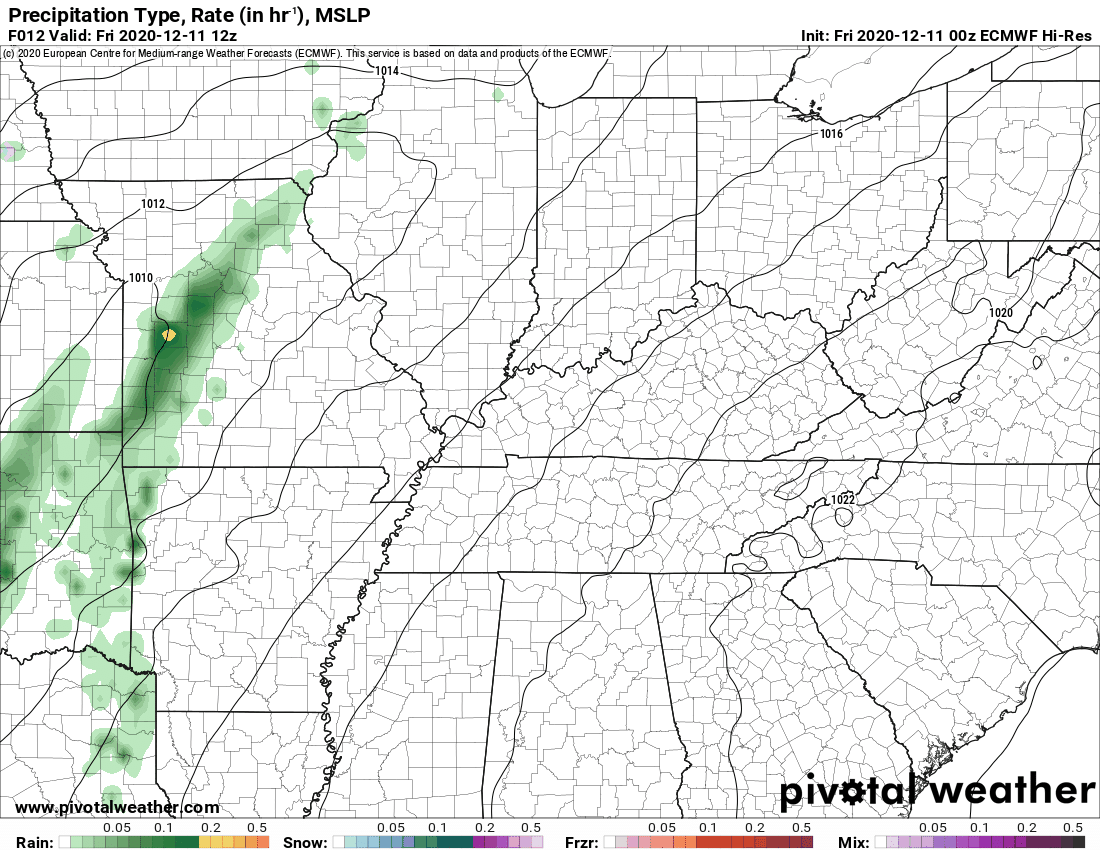 Temperature range: MO Bootheel 44° to 48° SE MO 42° to 45° South IL 42° to 45° Northwest KY (near Indiana border) 43° to 45° West KY 44° to 46° NW TN 44° to 48°