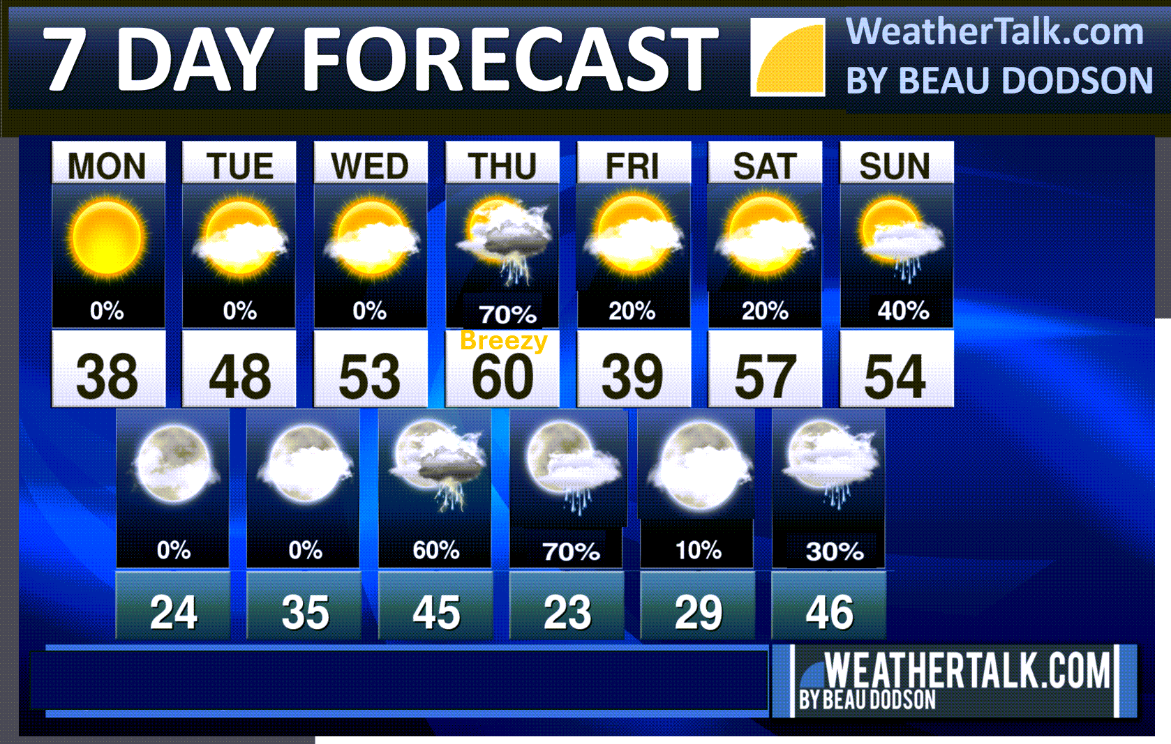 - A bit milder on Saturday and Sunday. Scattered weekend showers.