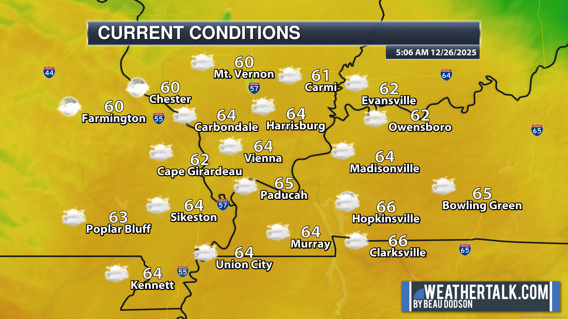 Here were the 6 AM temperatures. A mild start to your Friday.