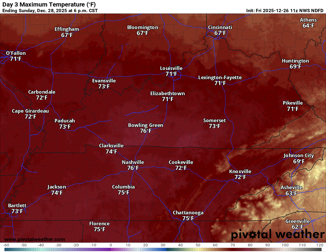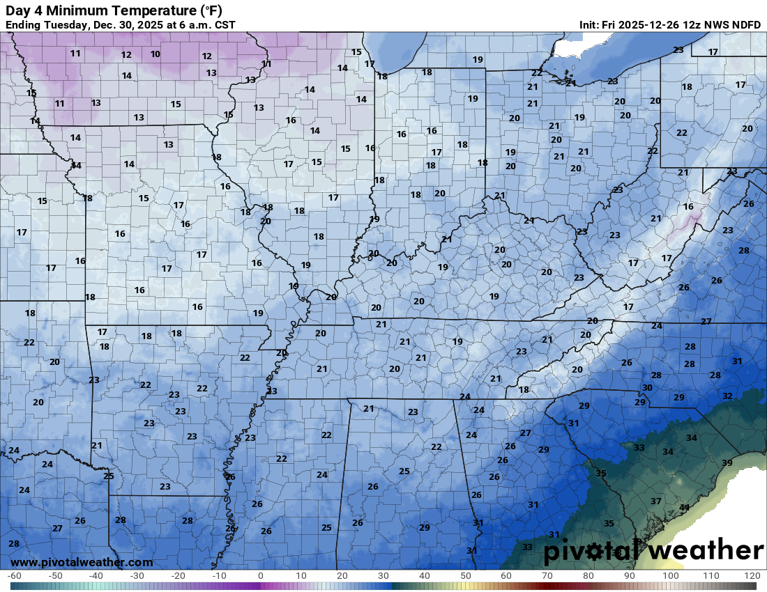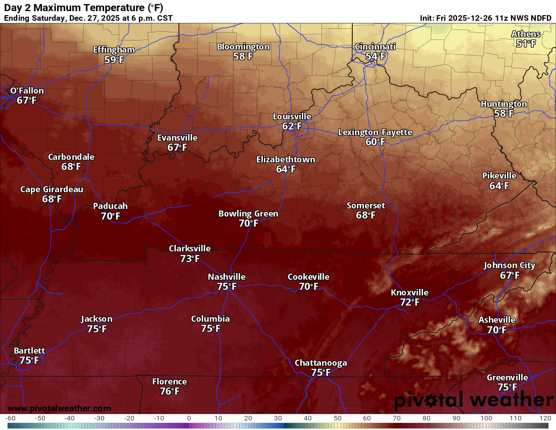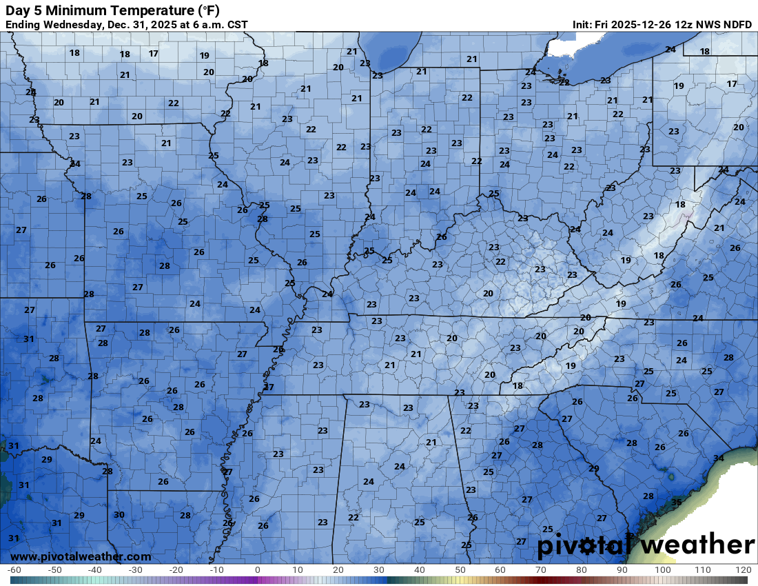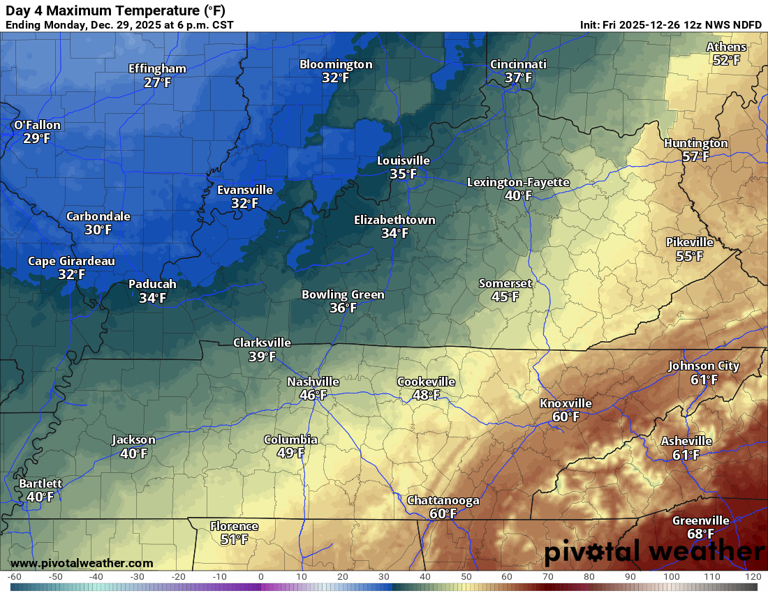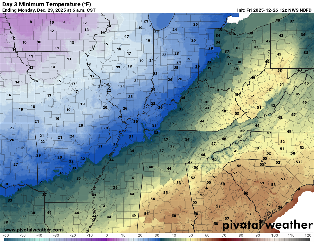 We will need to monitor the speed of the front. Temperatures will be highly dependent on the front moving east of our region (colder behind the front).