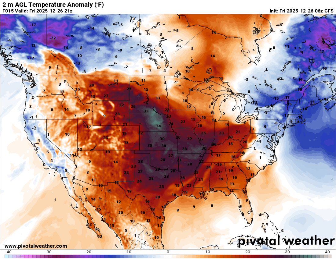 Just look at these temperature anomalies. This graphic shows you how many degrees above average temperatures will be.