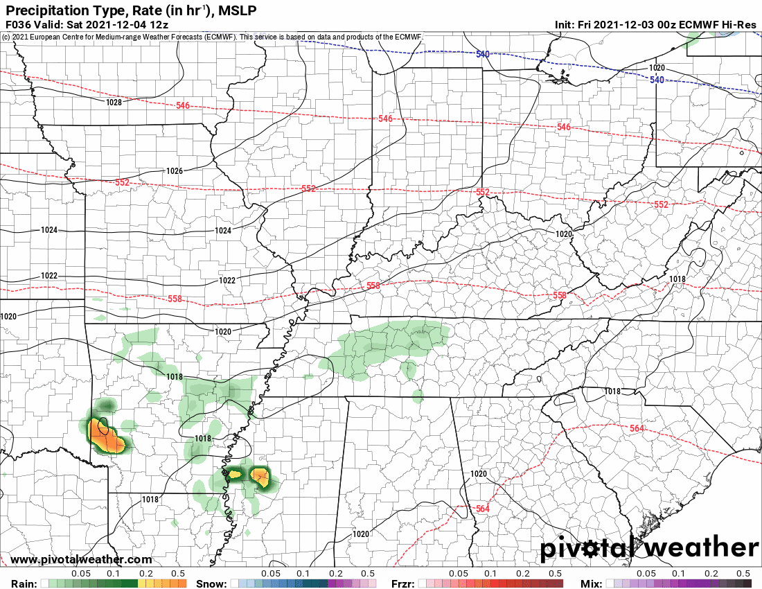 What is the chance of precipitation? MO Bootheel ~ 60% / the rest of SE MO ~ 60% / I-64 Corridor South IL ~ 60% / the rest of South IL ~ 60% / West KY ~ 70% / NW KY (near Indiana border) ~ 70% / NW TN ~ 60%