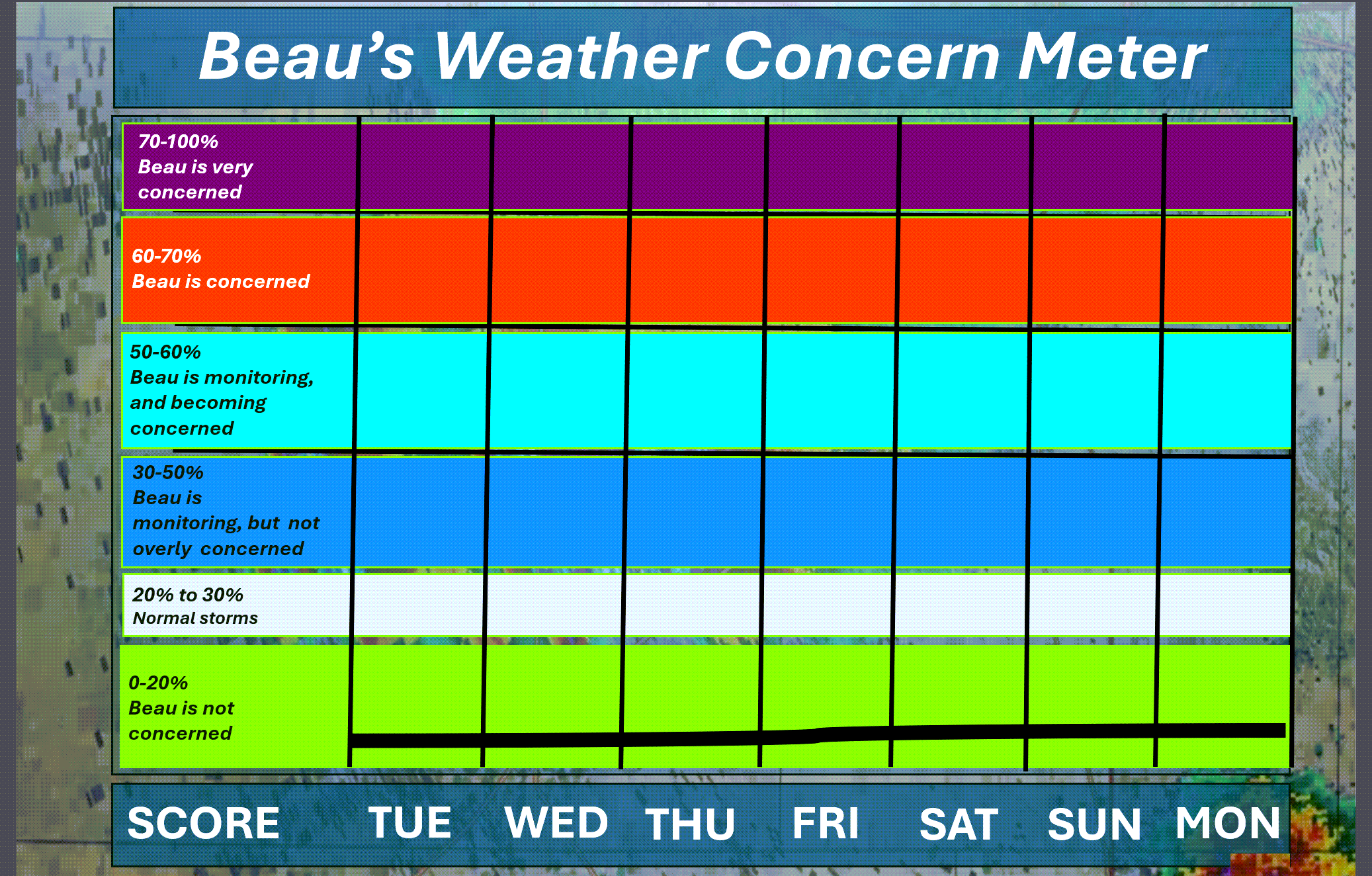 Here is the short-range thunderstorm concern meter.