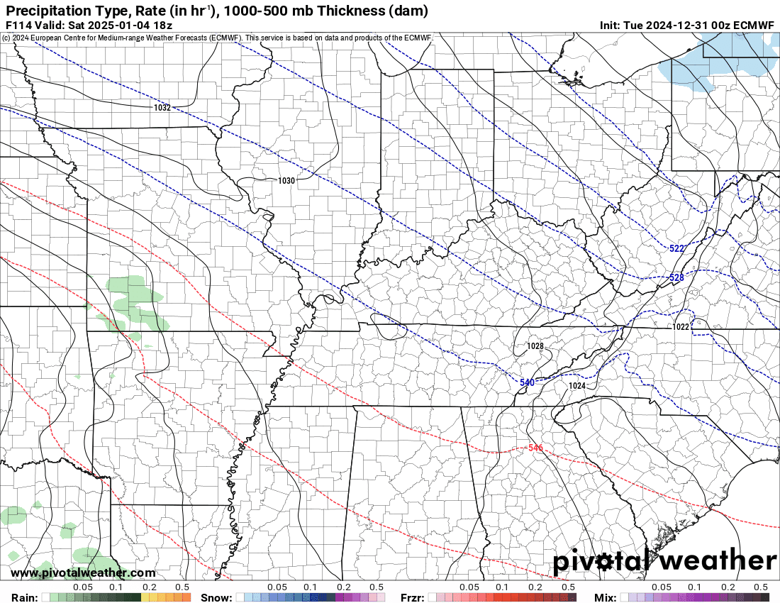 Southeast Missouri ~ 24° to 28°