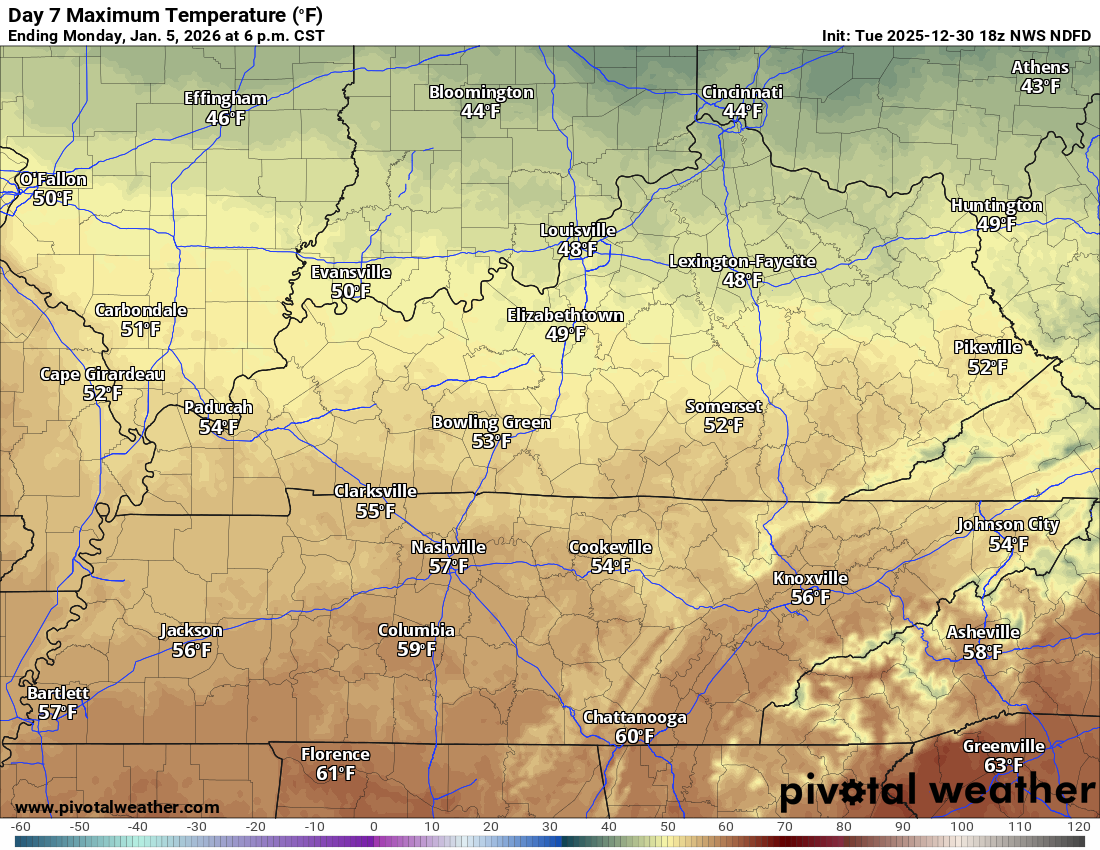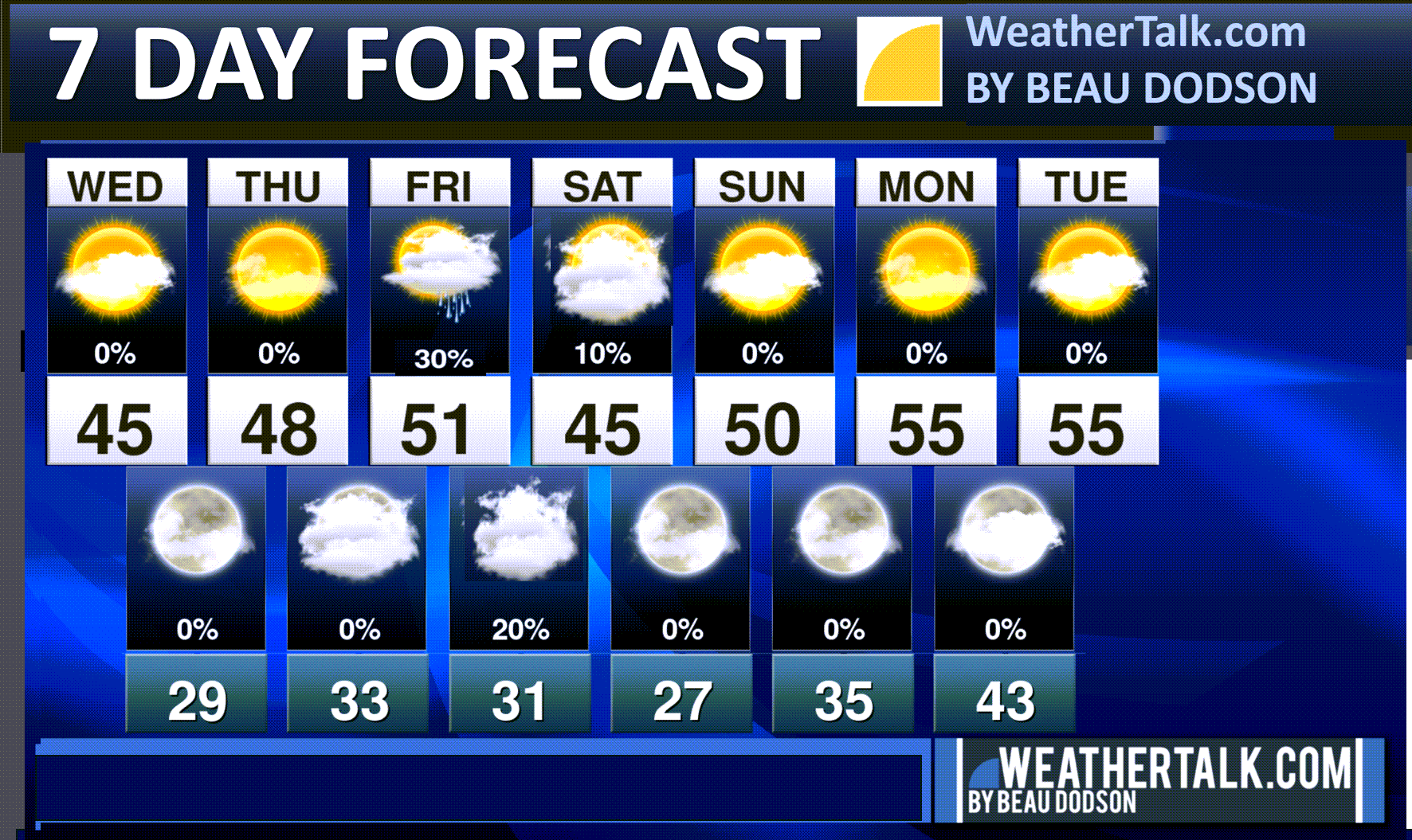 Average highs for this time of the year are in the lower 60s.  Average lows for this time of the year are in the lower 40s.