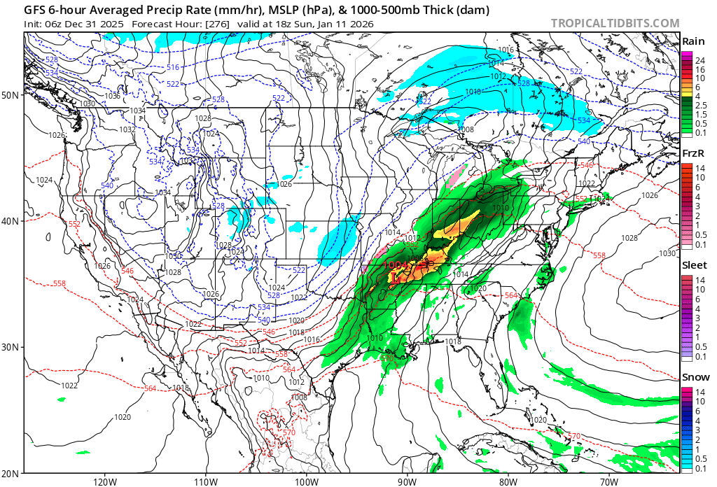 The GFS model shows a couple of systems.  Too soon to know the exact track or precipitation type.