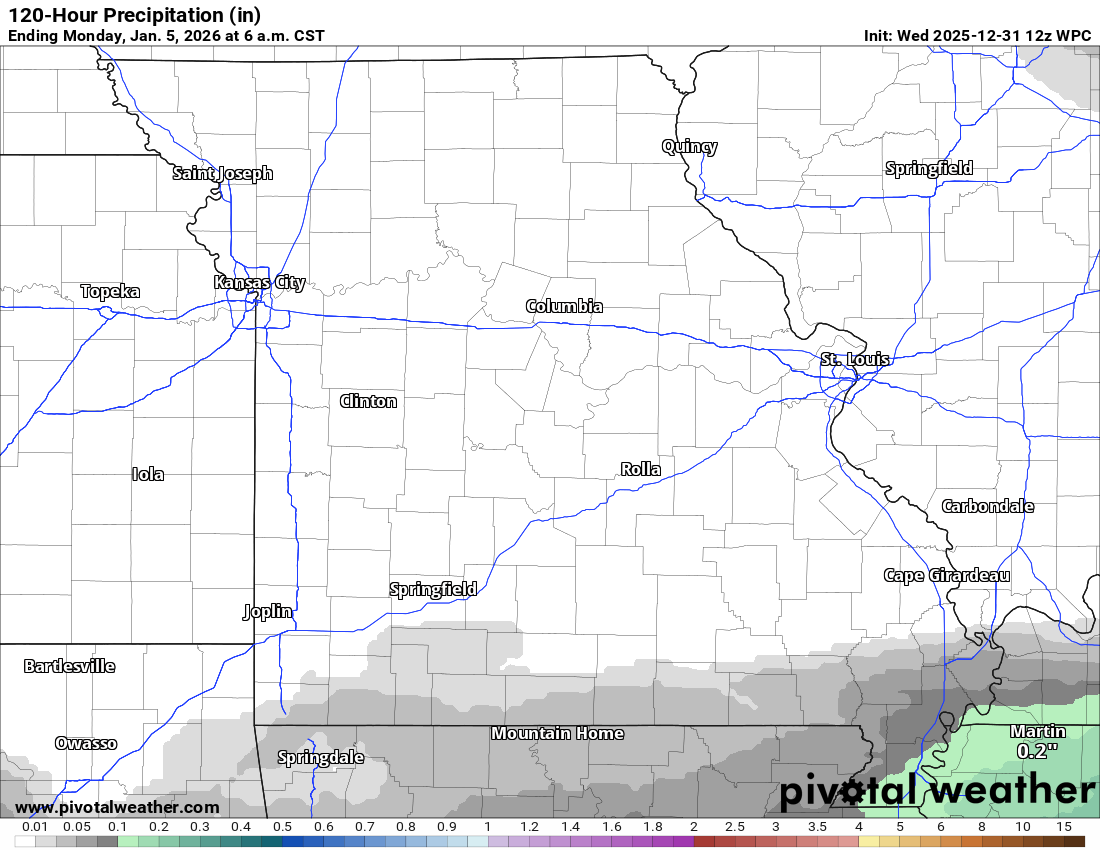 The chance of rain is highest along the MO/AR and KY/TN border.  In other words, my southern counties.