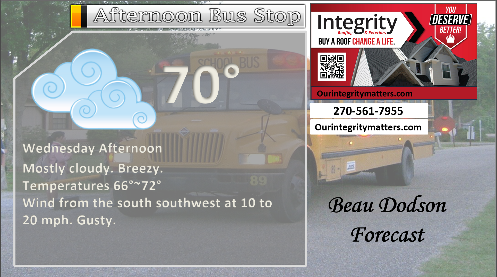 ⛈️ Roof or gutter damage from recent storms? Today’s weather is sponsored by Integrity Roofing. Check out their website at this link https://www.ourintegritymatters.com/