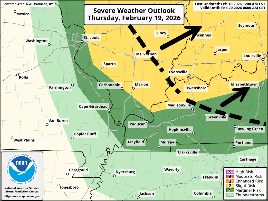2.  Are organized/widespread severe thunderstorms in the forecast? A FEW SEVERE STORMS ARE POSSIBLE.   A few of the thunderstorms could be severe on Thursday afternoon and night.  See the graphic above.  The risk is a bit higher across southeastern Illinois, Indiana, and northwestern Kentucky.  Most of the area will not see severe weather.