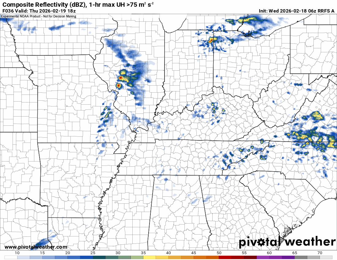This model pops most of the storms east northeast of our region (on Thursday PM)