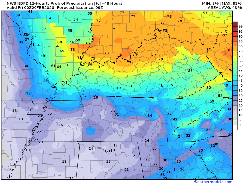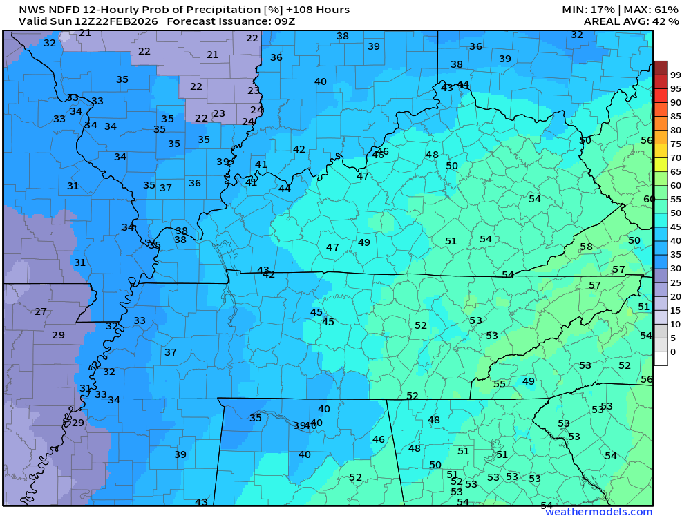 Lower chances in Missouri.  Higher chances over Kentucky and Tennessee.