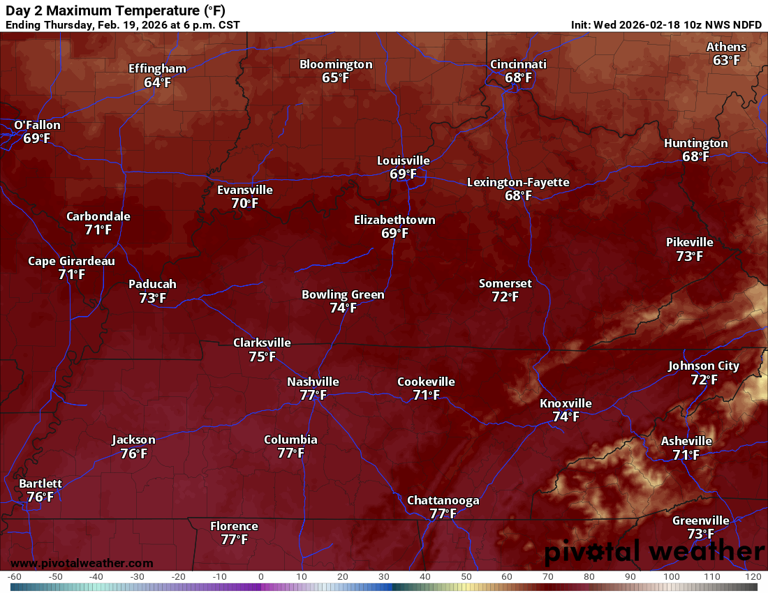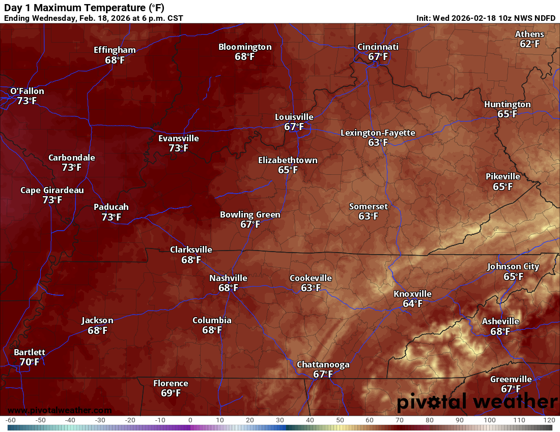 February 18, 2026: Mild and breezy into Thursday. A chance of a few showers and storms. The weekend will be much colder.