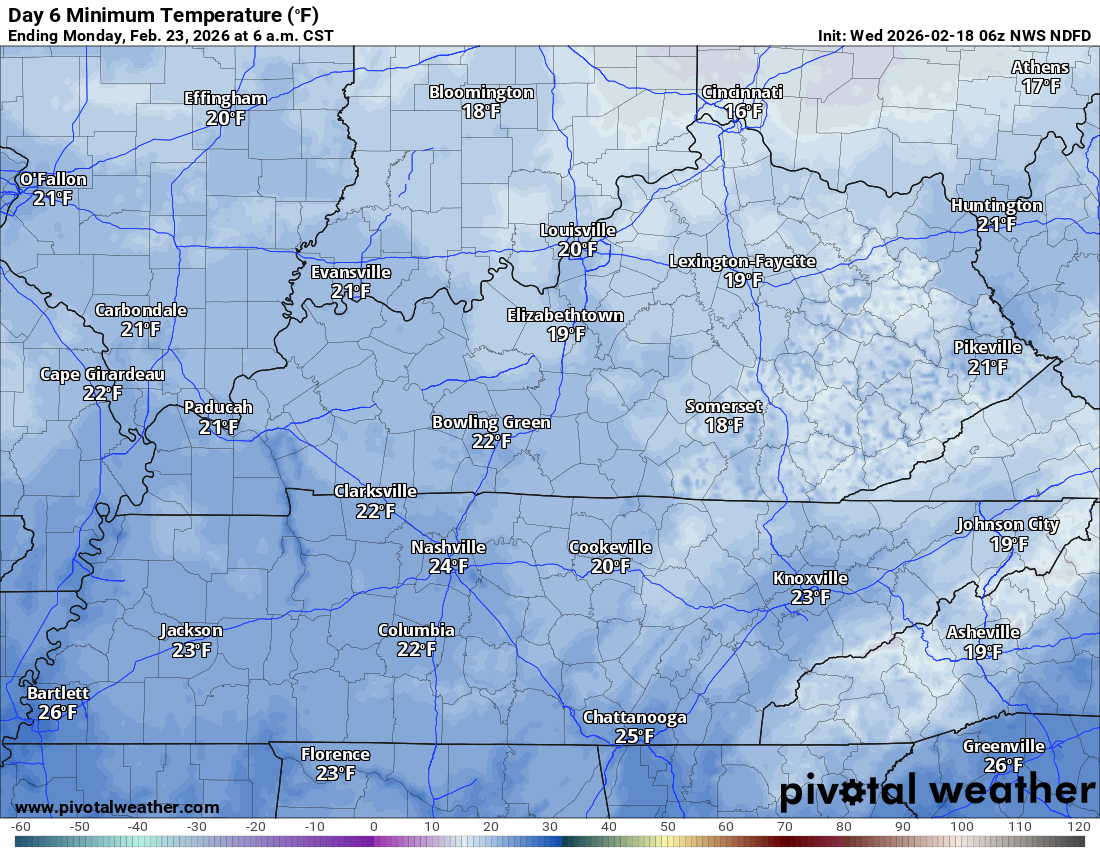 5. Will the temperature fall below 20 degrees?  POSSIBLE.  Sunday morning and Monday morning.