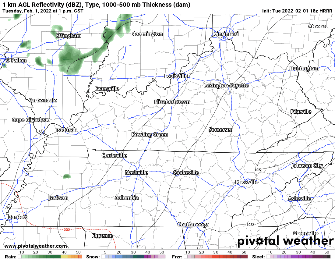 The cold front is entering western Kentucky. You can see it on this temperature chart.