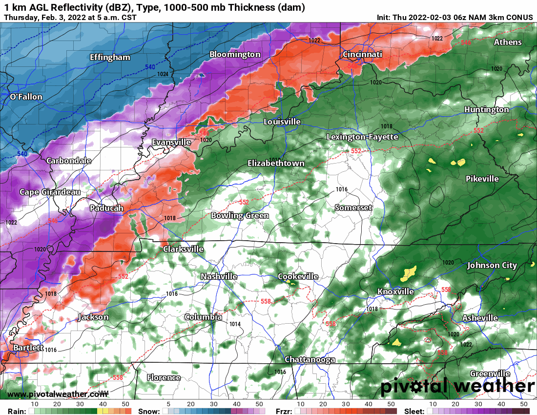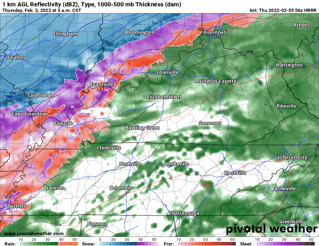 Accumulating freezing rain, sleet, and snow will occur Wednesday into Thursday night. First across Missouri and Illinois and then spreading into Kentucky and Tennessee.