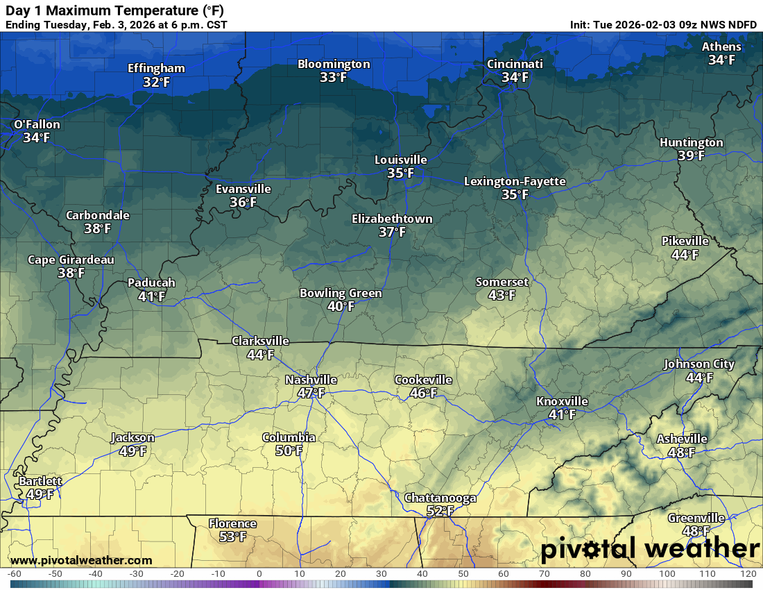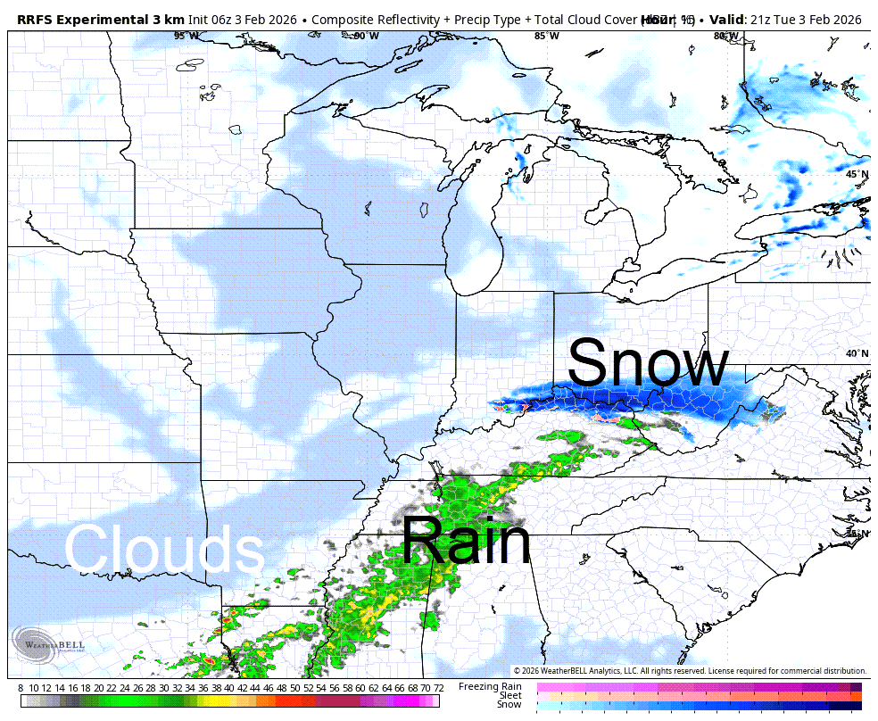 Then I will monitor the evening hours as temperatures fall again.  Some light mixed precipitation is possible.  Mainly over Kentucky.