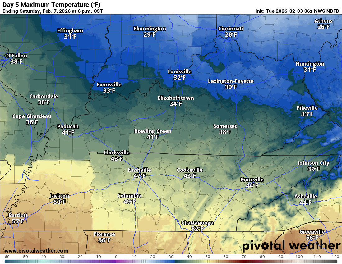 Let’s look at high temperatures for the upcoming week.  Overnight lows will be colder, but not as extreme as recent days.