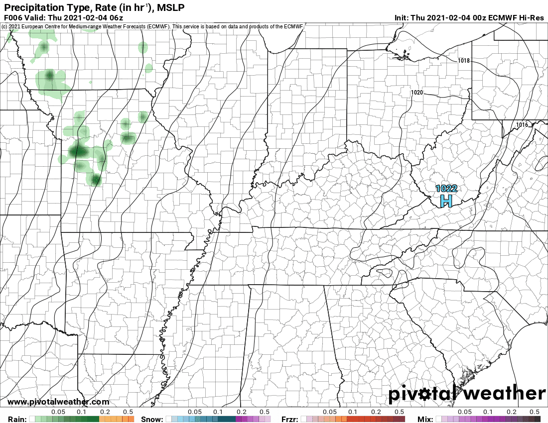 Temperature range: MO Bootheel 34° to 38° SE MO 32° to 35° South IL 32° to 35° Northwest KY (near Indiana border) 34° to 36° West KY 38° to 42° NW TN 40° to 44°