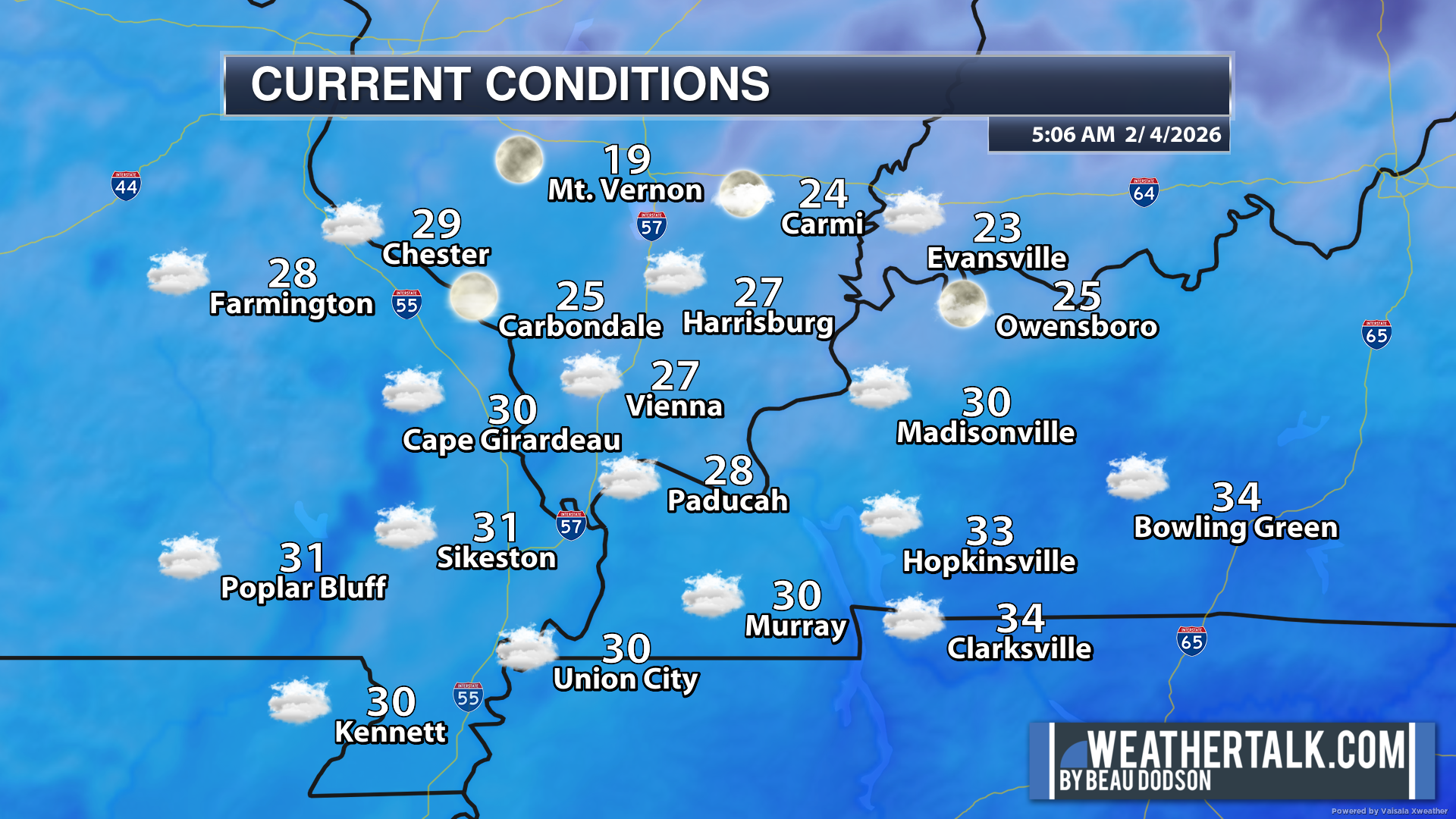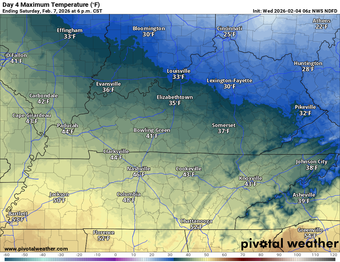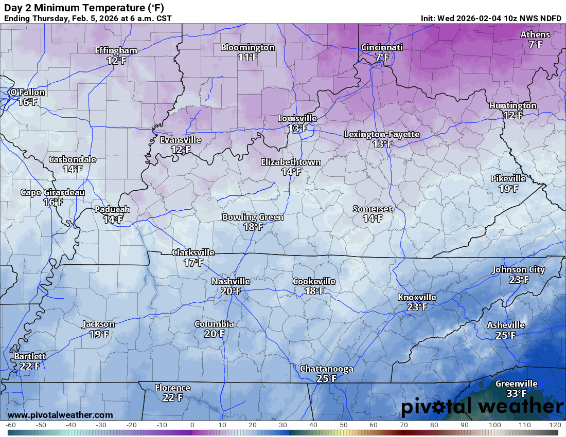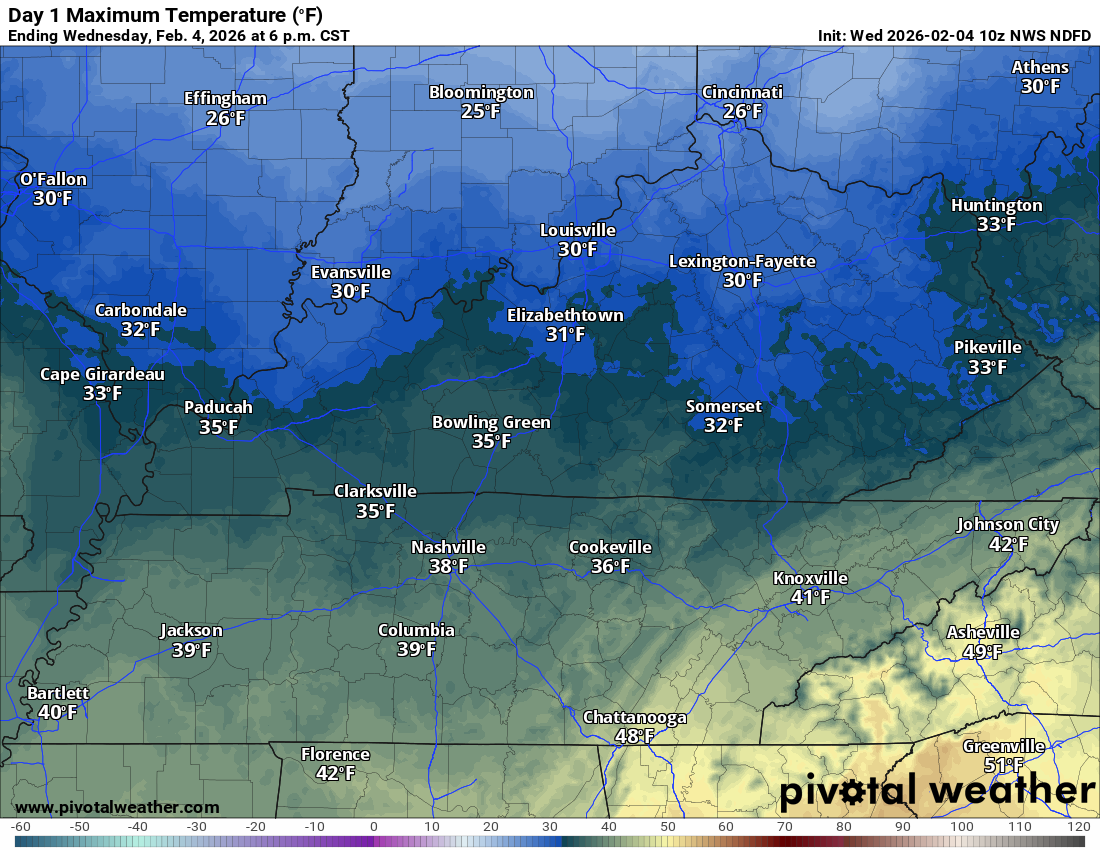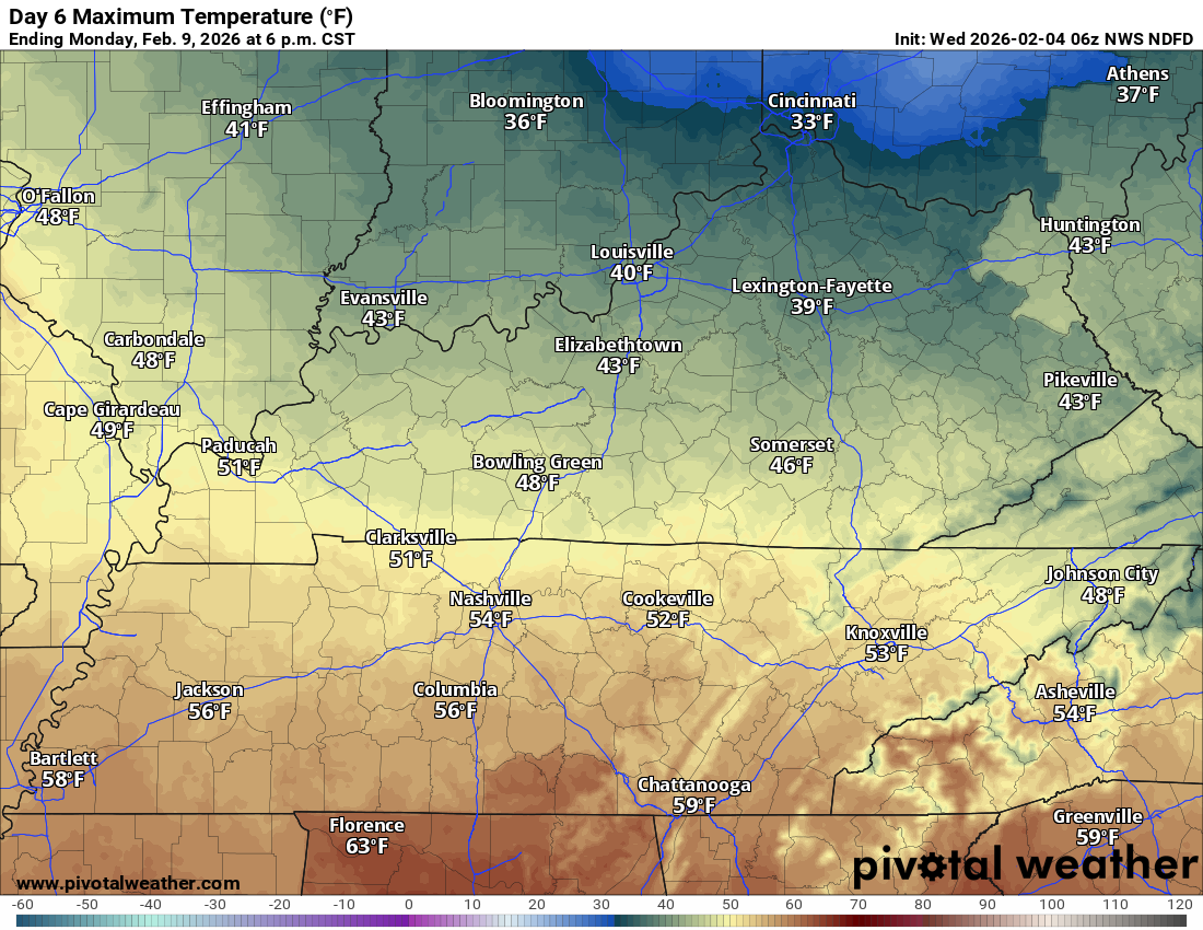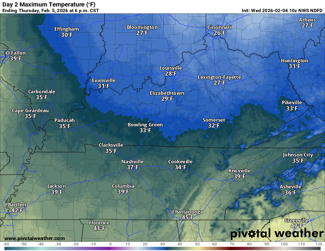 Notice the warmer temperatures in the Bootheel and Tennessee. That is a different NWS Office, and there is disagreement on temperatures.