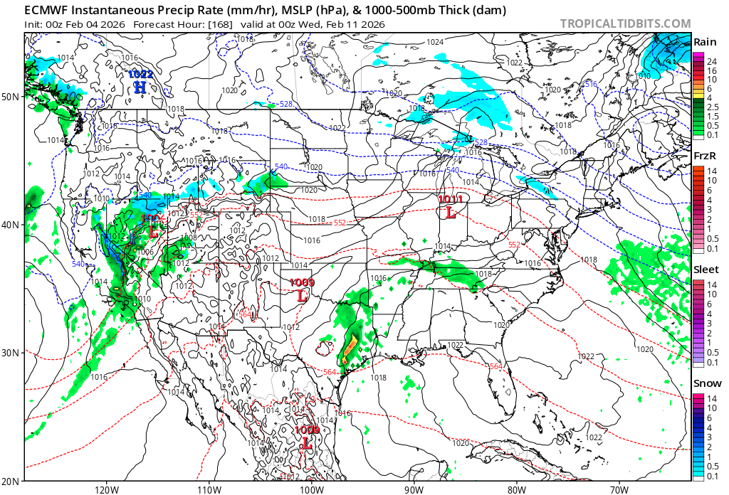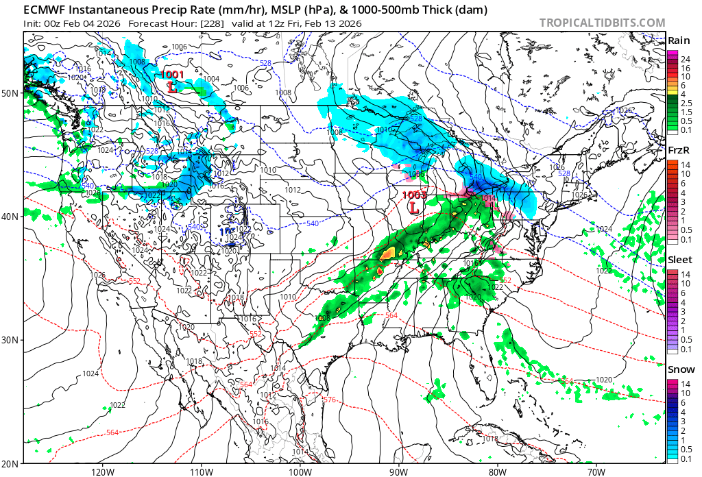 February 10th and 11th. It shows light rain. The GFS model shows this around the 13th or so.