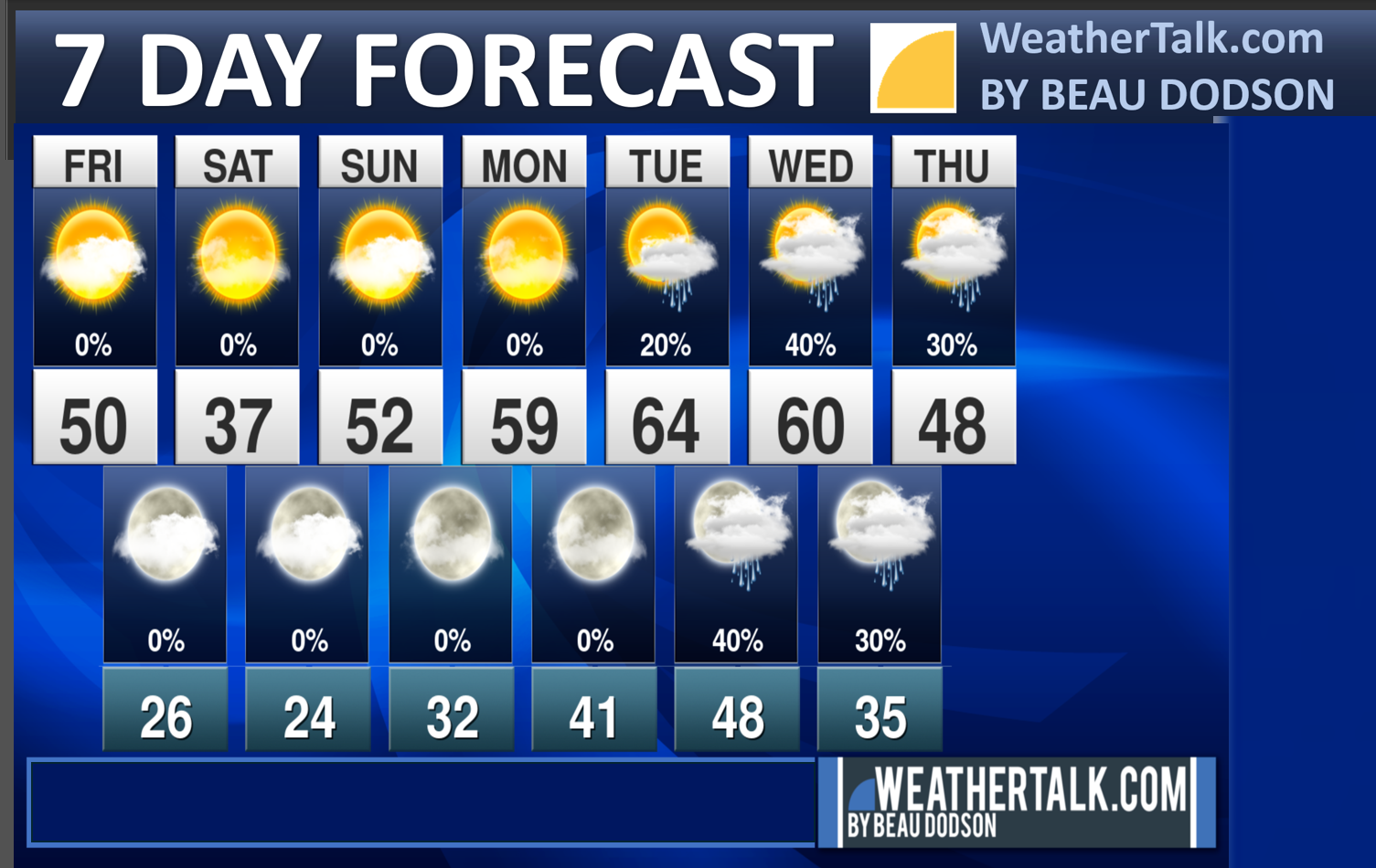 It will be dry through the weekend. A few clouds are expected later today along an incoming cold front.