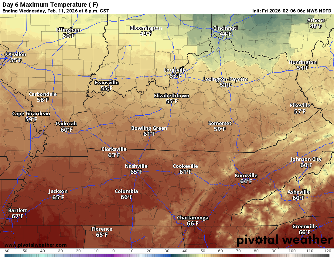 Average highs for this time of the year are in the lower 60s. Average lows for this time of the year are in the lower 40s.