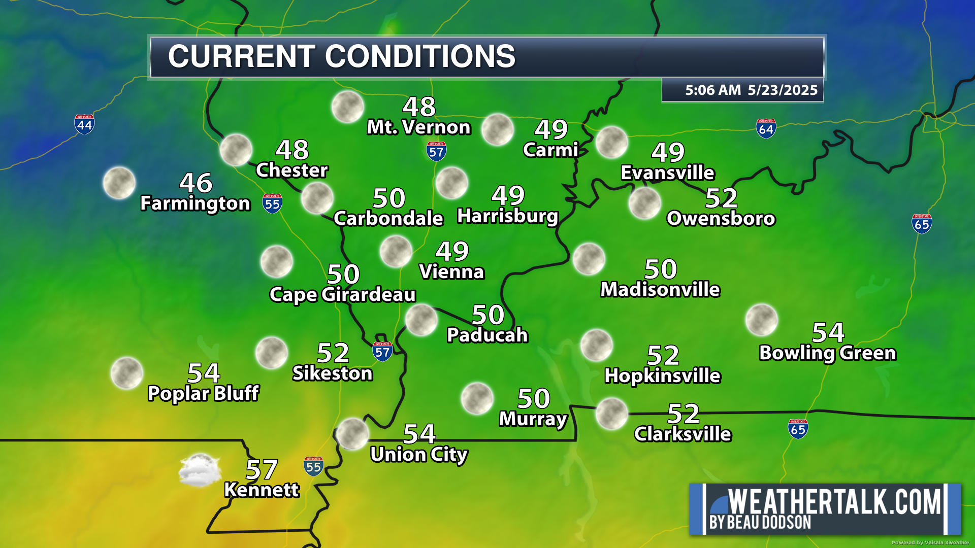 We are waking up to cool temperatures. Northern portions of southern Illinois were in the low to mid-40s an hour ago.
