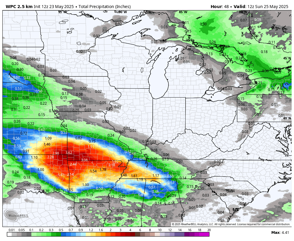 The higher rain totals will be draped northwest to southeast across Missouri and Tennessee. Then, lower towards as you move towards southeast Indiana and northwest Kentucky.