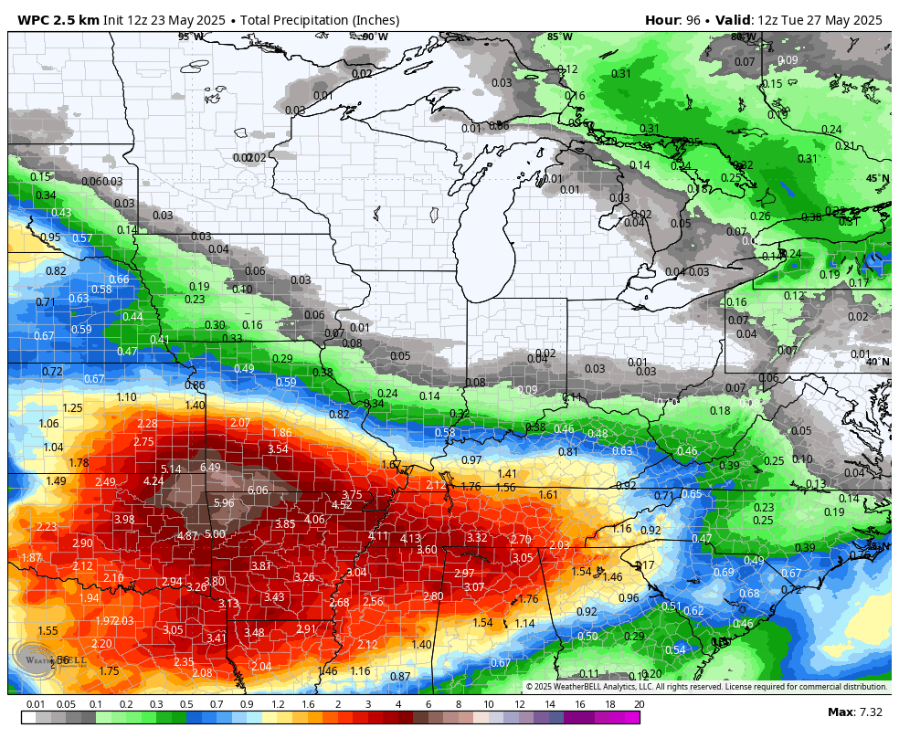 3. Is flash flooding in the forecast? SCATTERED RISK. On and off periods of rain into next week. With repeated rounds of thunderstorms, I can’t rule out some spotty water issues. The risk is highest across southeast Missouri.