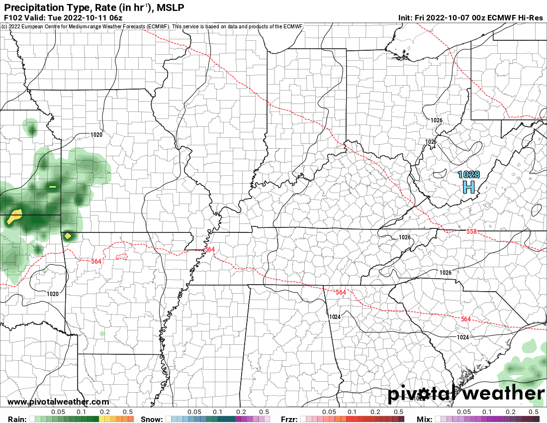What is the chance of precipitation? MO Bootheel ~ 0% / the rest of SE MO ~ 0% / I-64 Corridor South IL ~ 0% / the rest of South IL ~ 0% / West KY ~ 0% / NW KY (near Indiana border) ~ 0% / NW TN ~ 0%