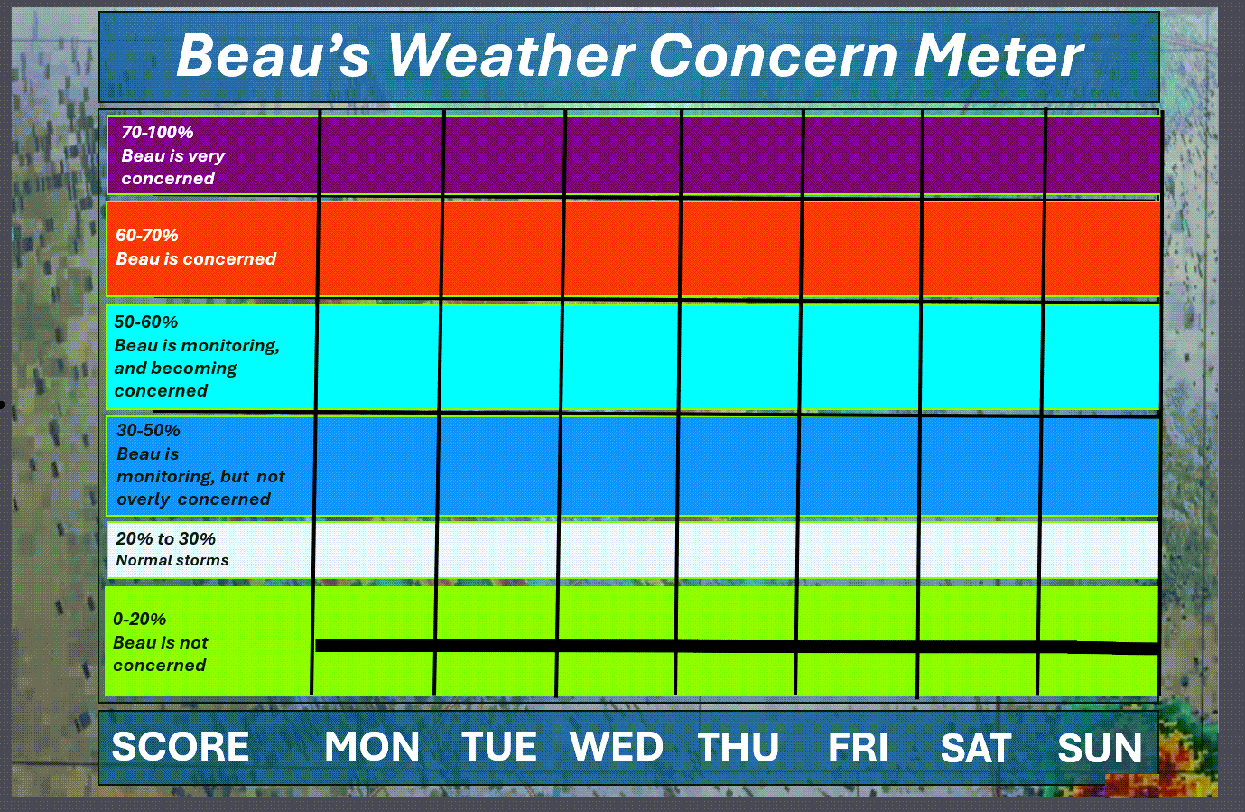 ⛈️ Here is the extended thunderstorm concern meter.