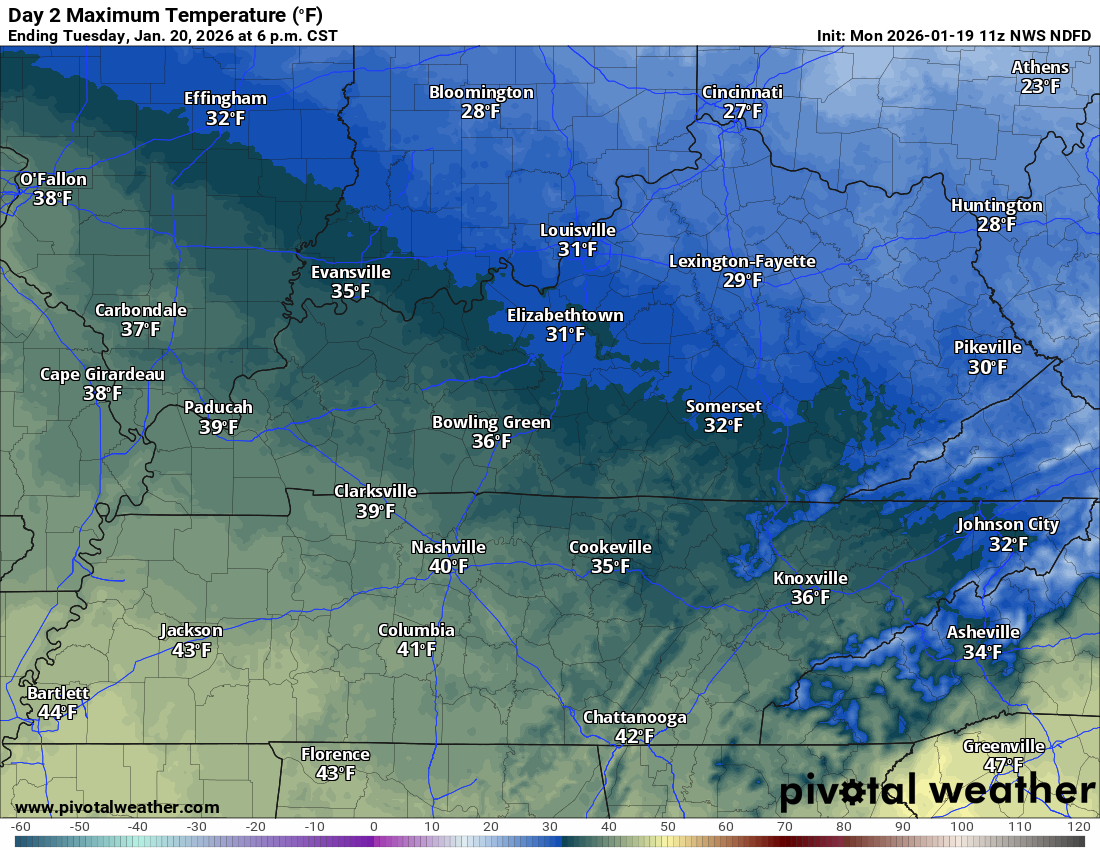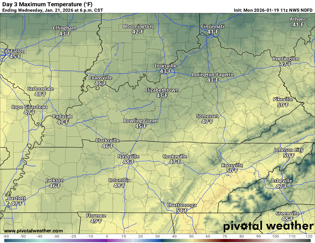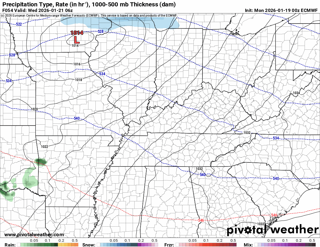 - A fast-moving weak system will bring a few rain and snow showers to the region on Wednesday and Wednesday night. Mainly across far southern Missouri into Kentucky and Tennessee. Lower chances north.