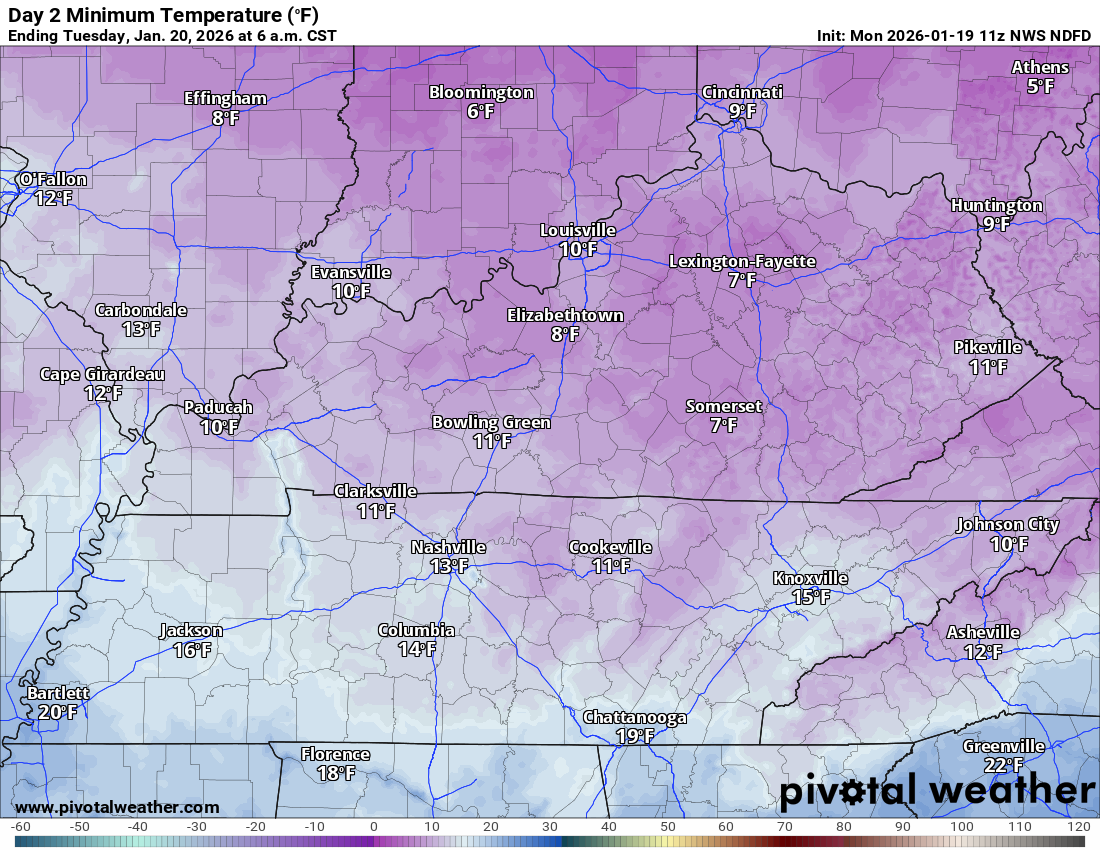 Tomorrow morning will be cold for the kids at the bus stop.