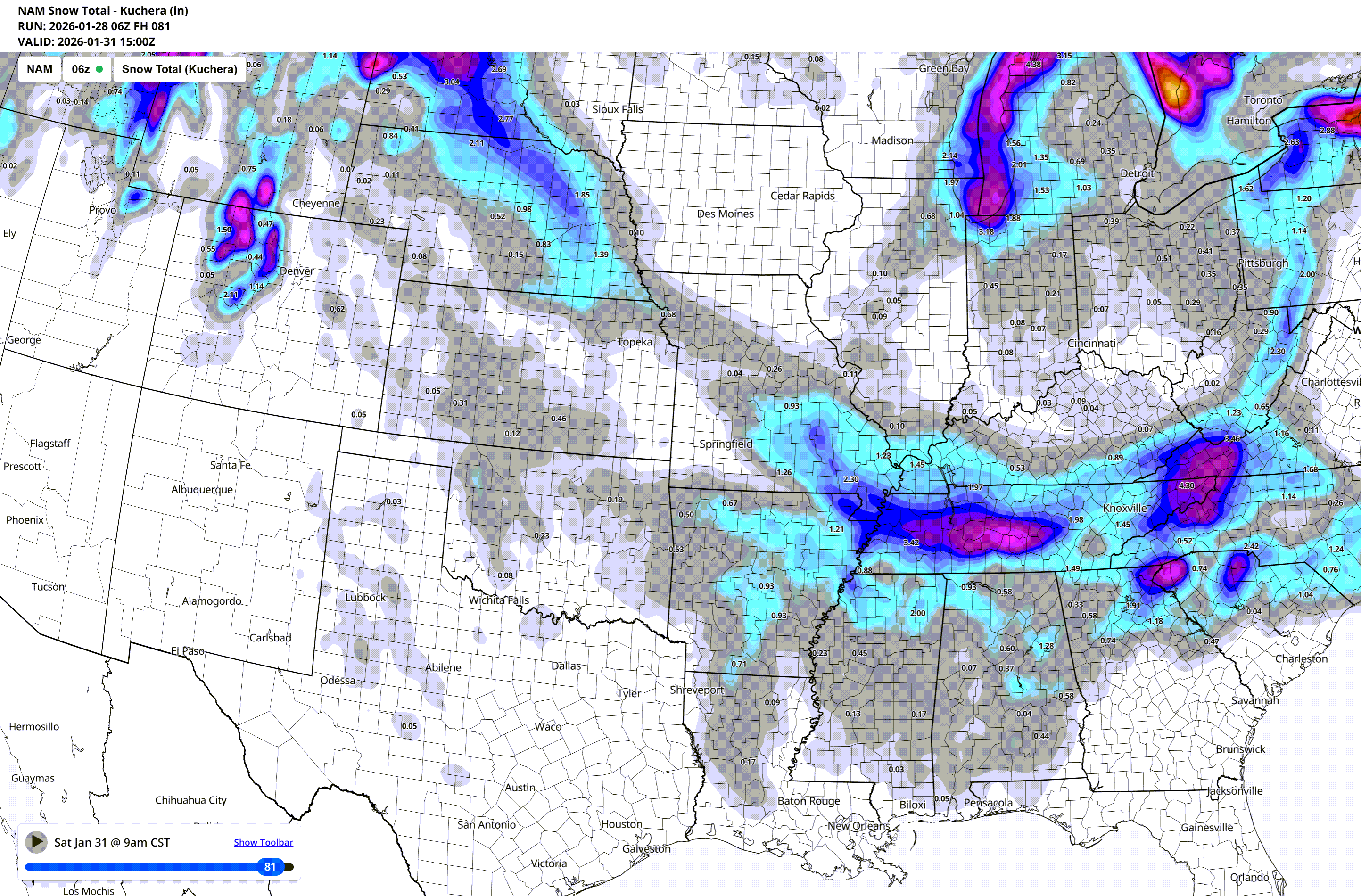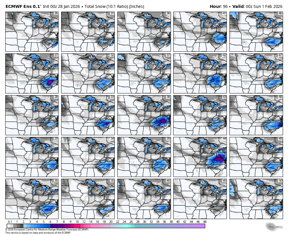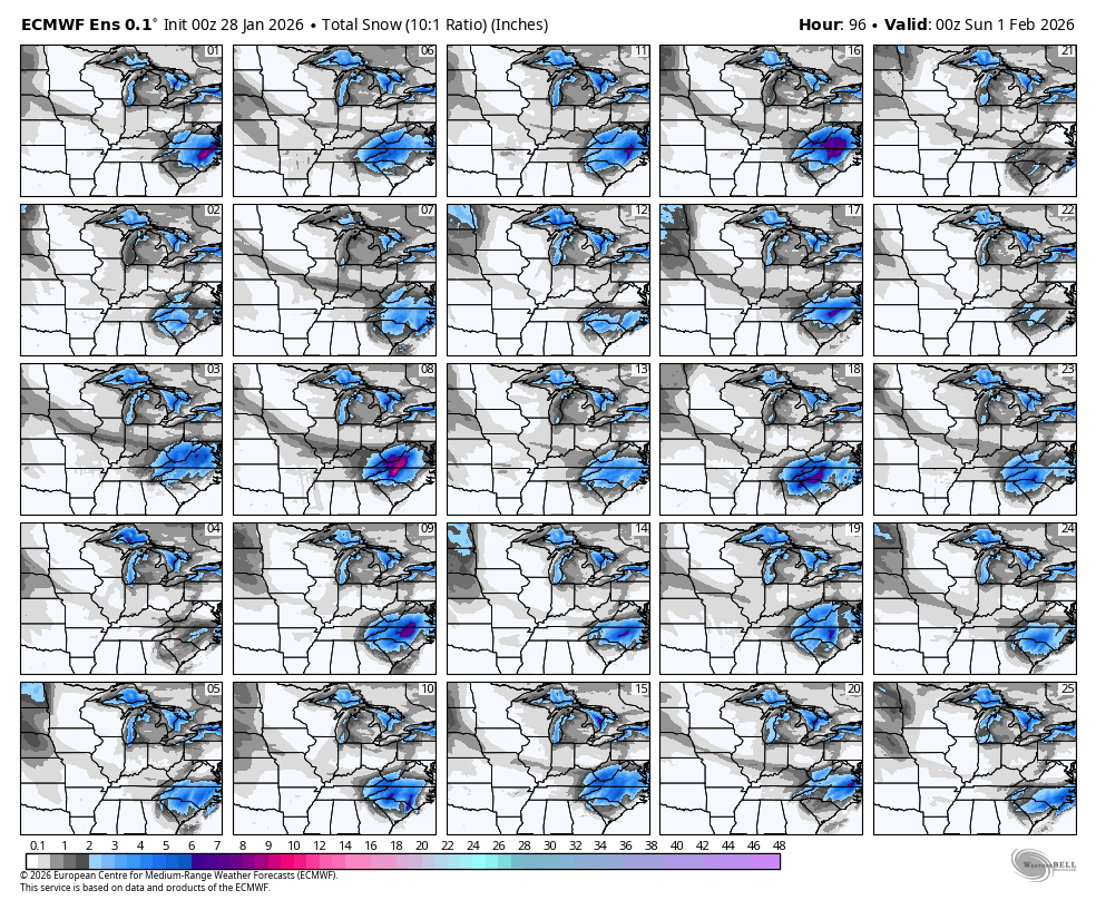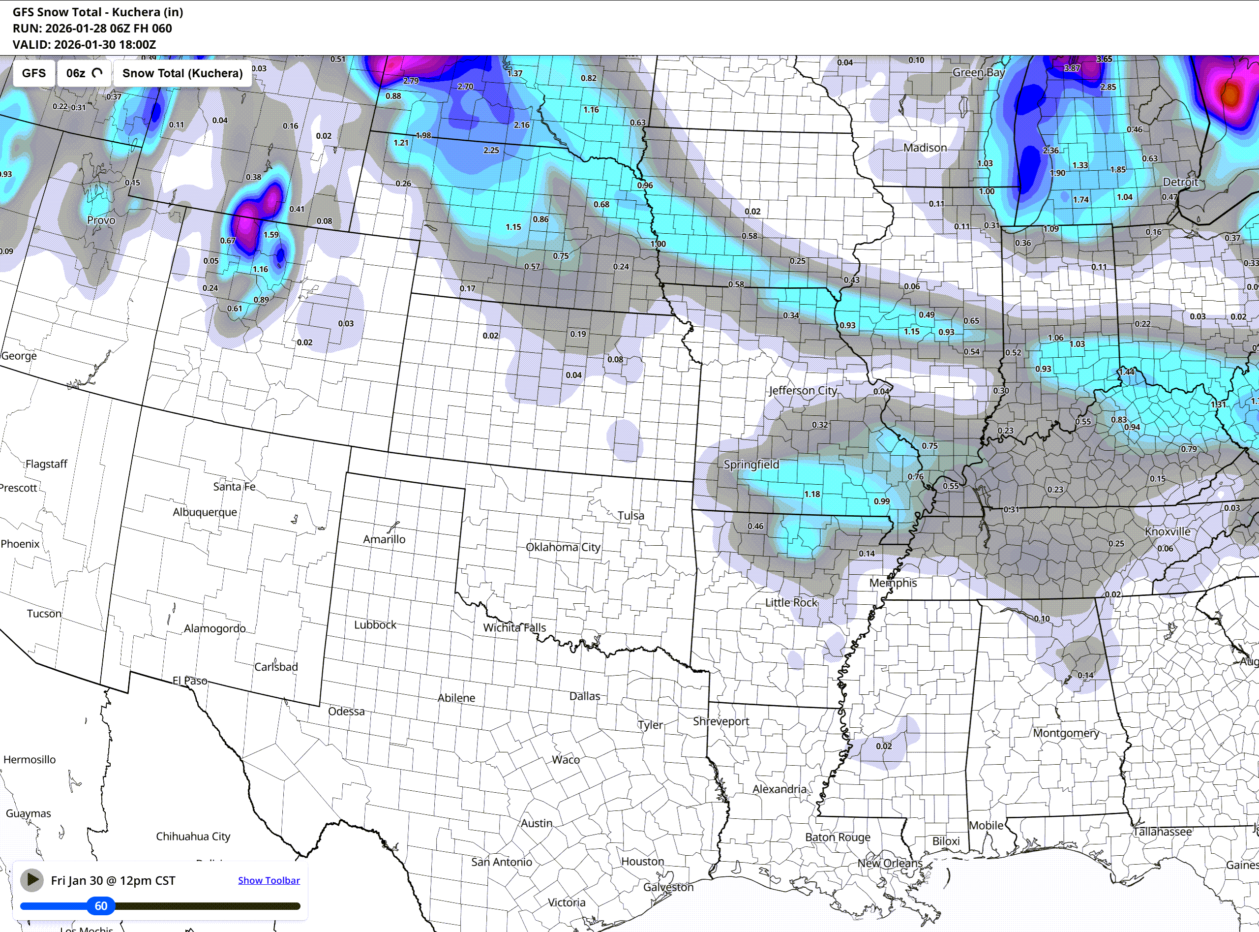 As you can see, a lot of model squares show a dusting or so of snow on Thursday into Saturday evening.