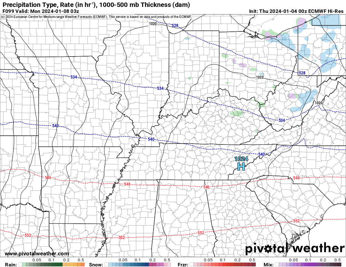 This would keep the higher snow chances northwest of St Louis.  But, close to some of my counties.  Again, if the low were to track through Kentucky/Tennessee then you would shift the rain/snow line farther into southeast Missouri and southern Illinois.