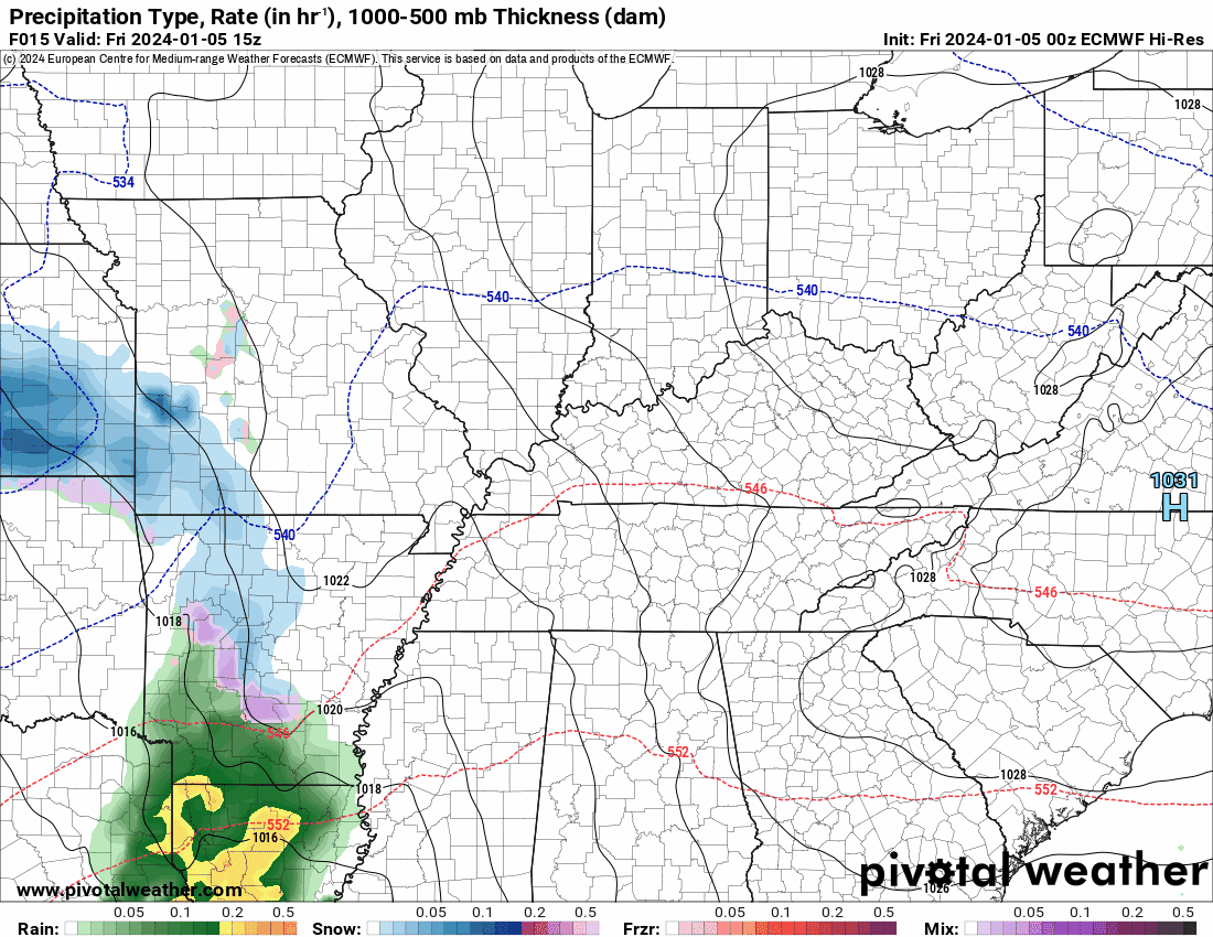 I am watching Butler County, Missouri northeast to Bollinger County, Missouri and then northeast towards Jefferson County, Illinois. Along and northwest of that line has a higher chance of snow vs areas south and east.