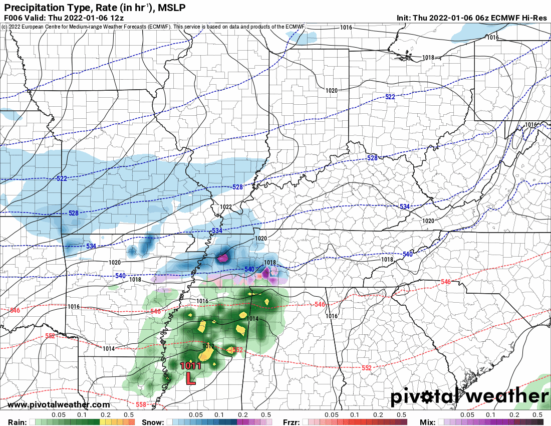 We talked about a heavier band of snow across portions of Kentucky and Tennessee. The overnight data indicates that is the correct idea. Thus, we bumped up snow totals in those areas.