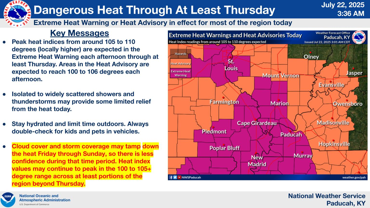 8. Will the heat index rise above 115 degrees? POSSIBLE.  A few locations could top 115 degrees.