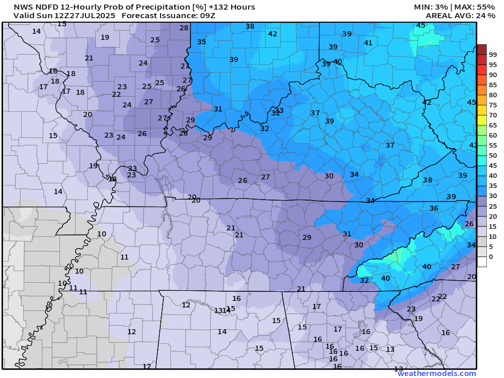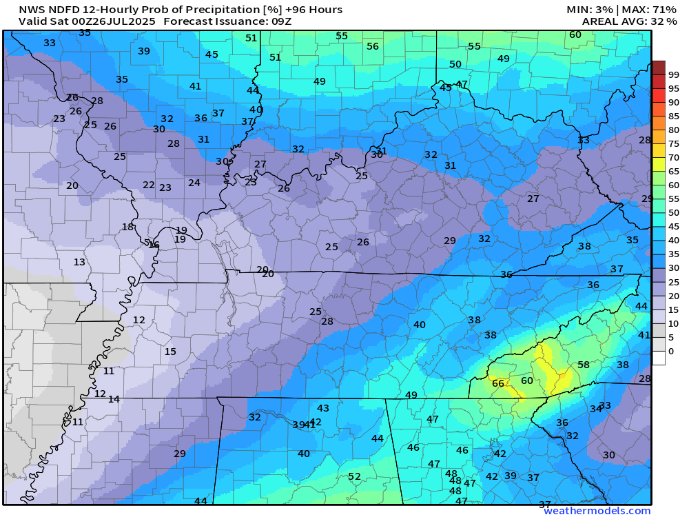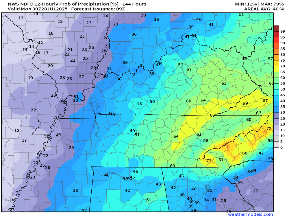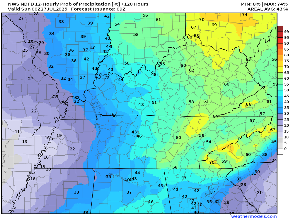 These numbers may vary a bit in the daily video.  I gave the average chance area-wide on the video update.