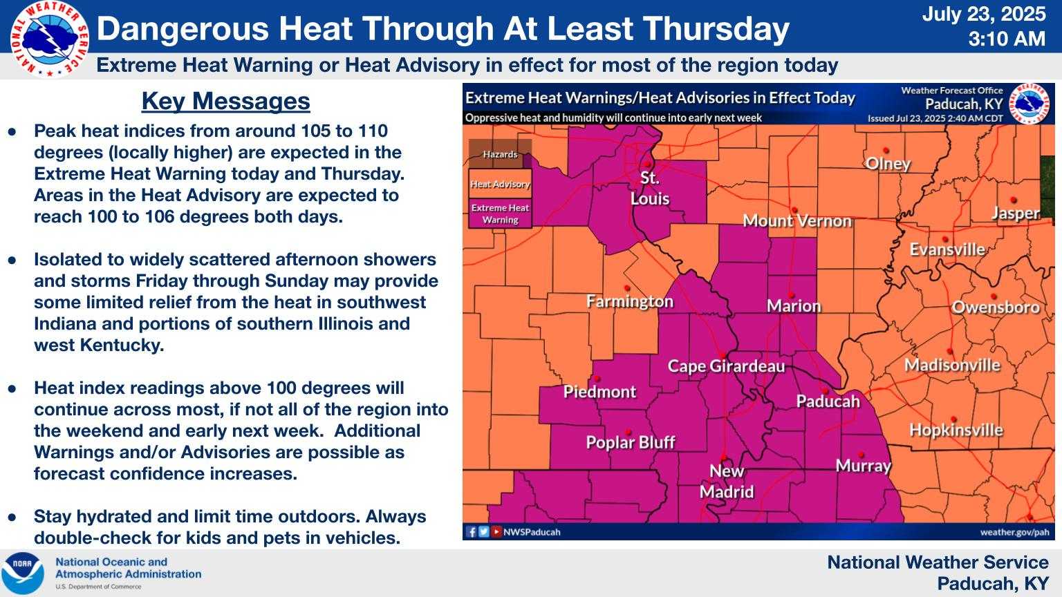 8. Will the heat index rise above 115 degrees? LOW RISK.  A few locations could reach heat index temperatures of 115 degrees or higher today through Friday.