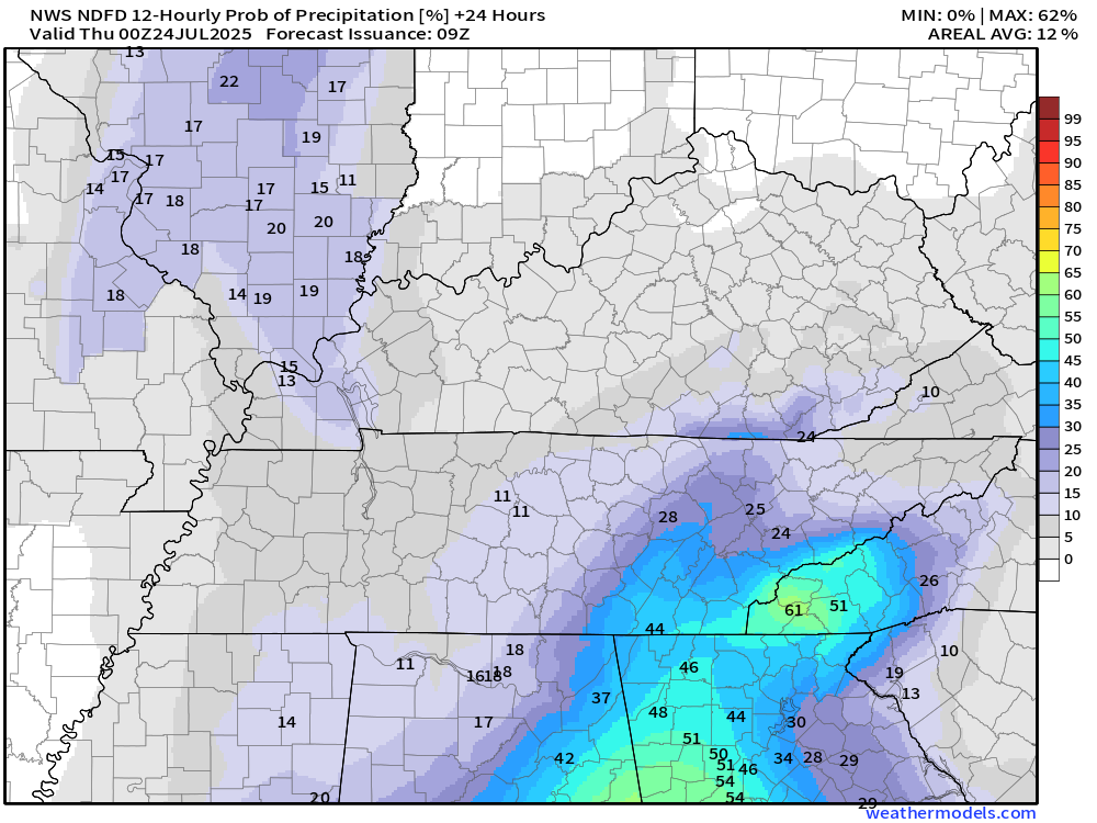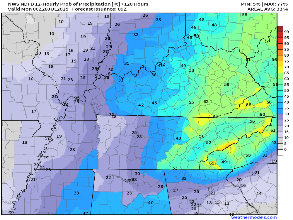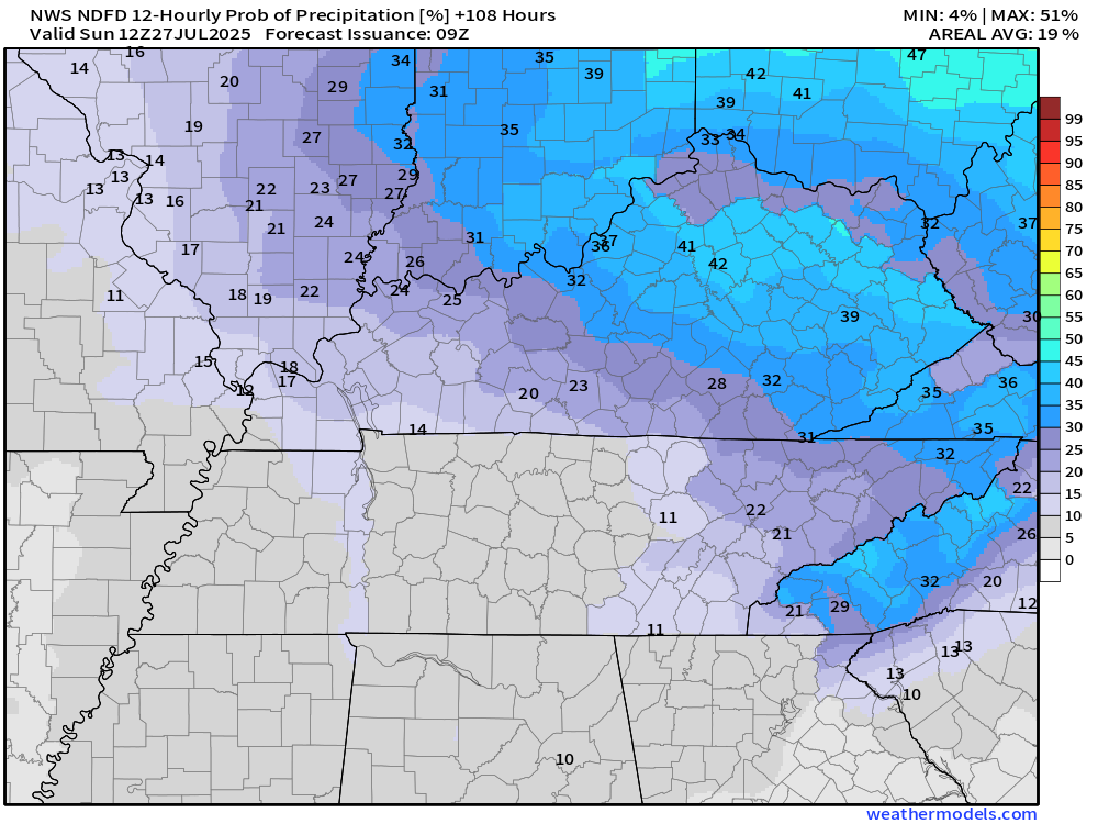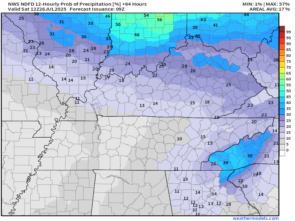 Let me show you the current NWS rain probability maps.