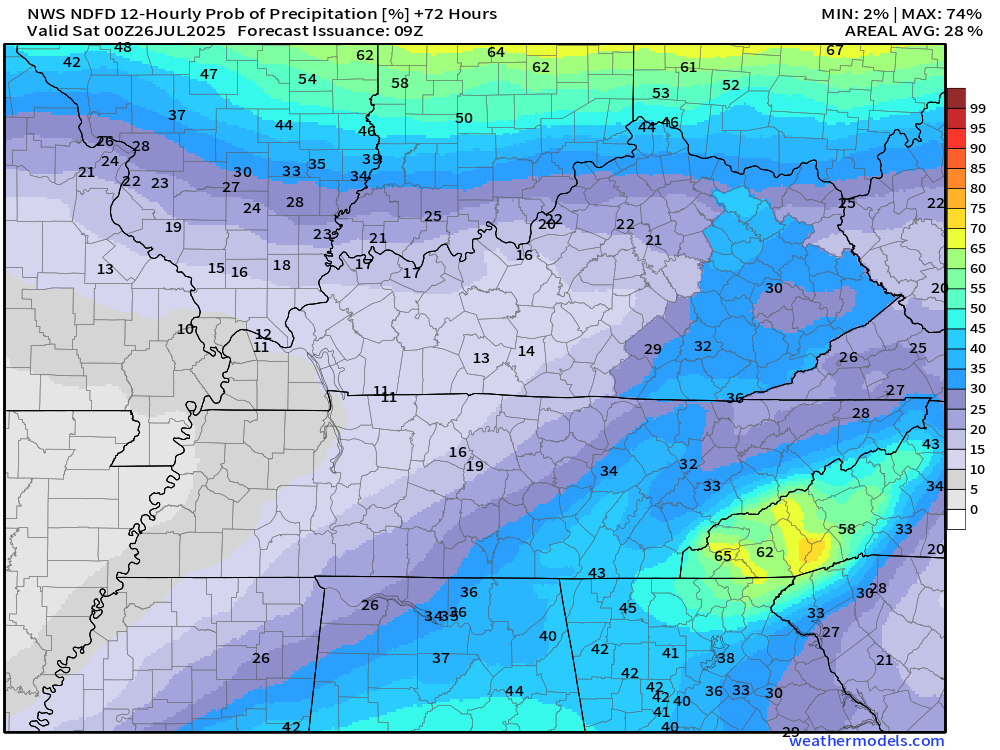 These numbers may vary a bit in the daily video.  I gave the average chance area-wide on the video update.