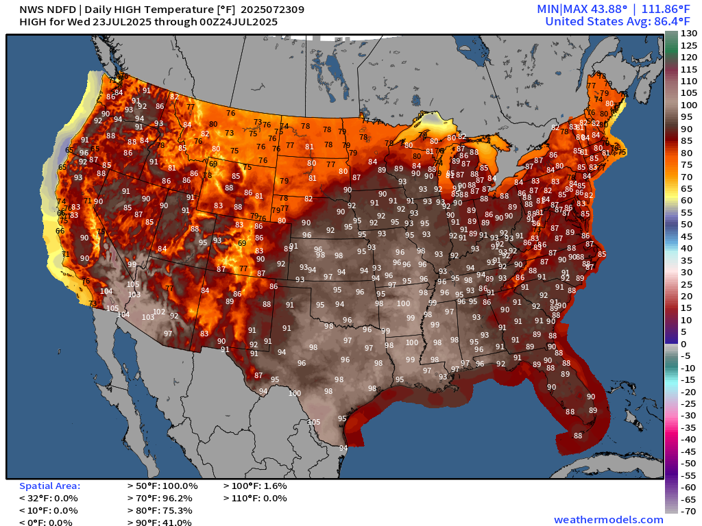 This is today’s high temperature forecast.  Toasty.
