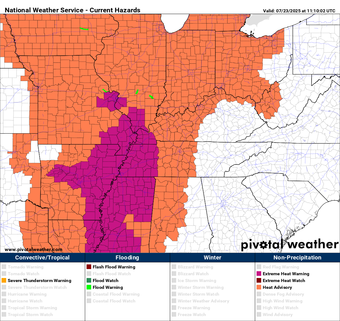 You can see the heat on this advisory/warning map.  A large area of NWS heat products.