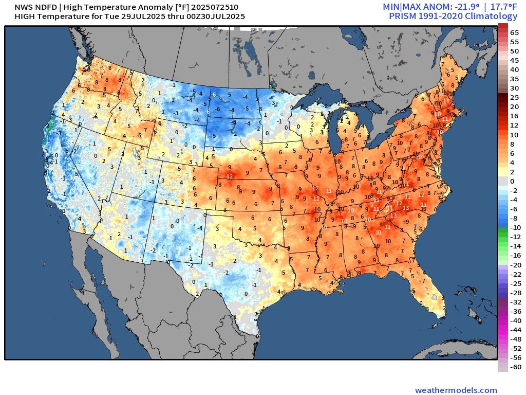 The ridge of high pressure is causing a large portion of the USA to bake in typical summer heat. Humidity levels are higher than usual. That is why it feels awful outside.
