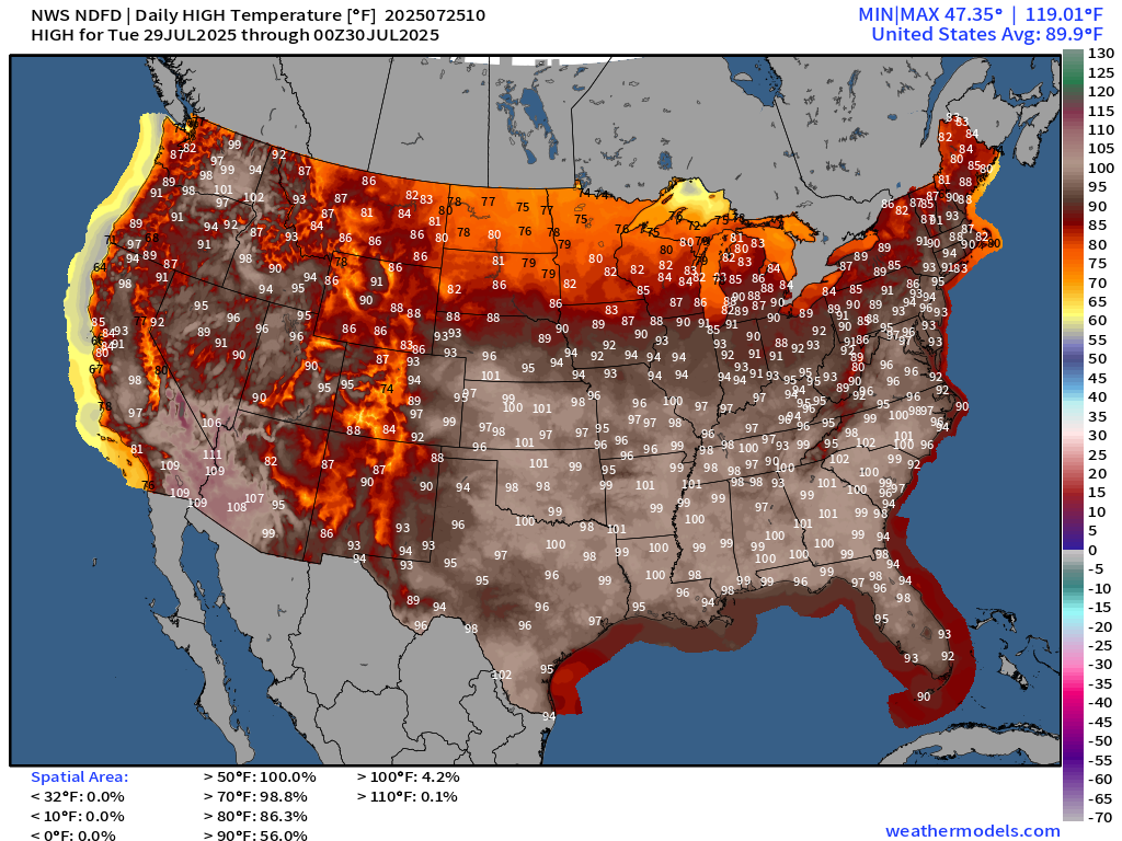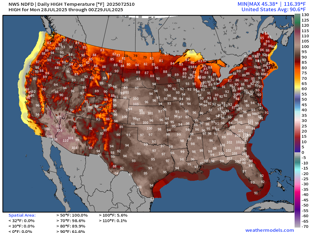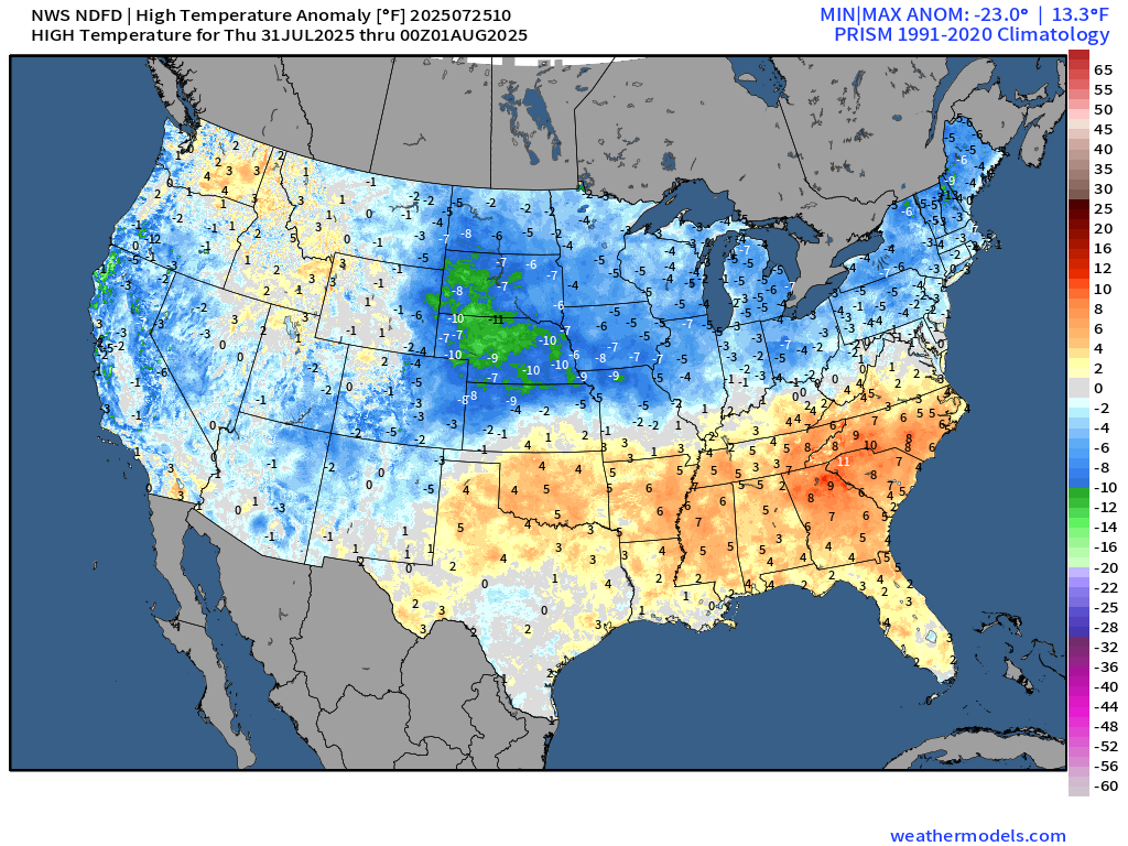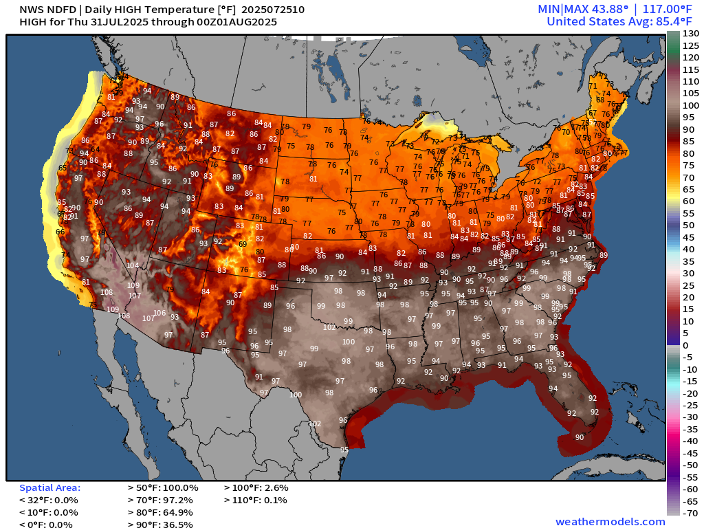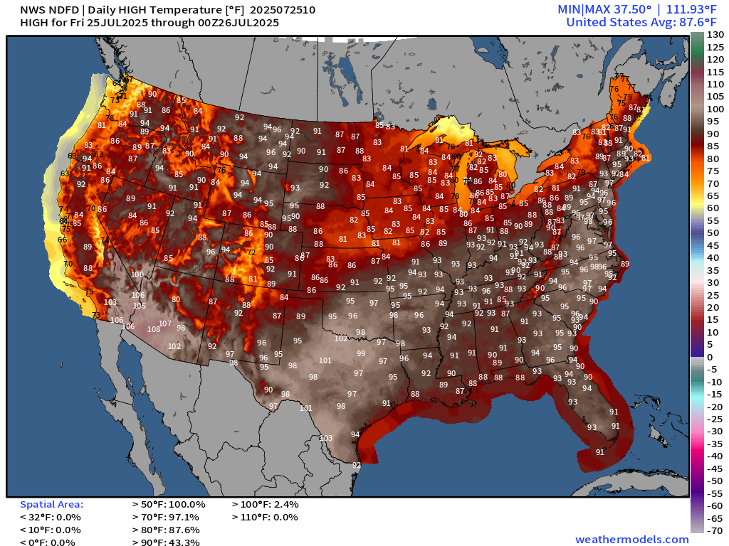 This is today’s high temperature forecast. Hot and muggy. Tomorrow and Sunday will be similar.