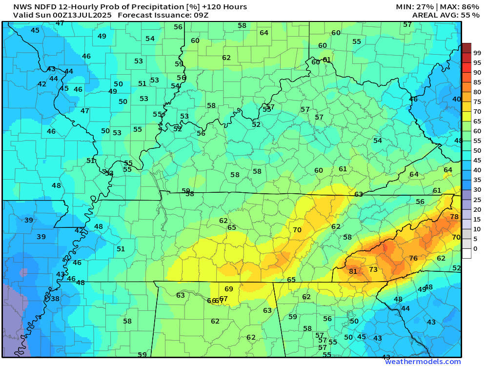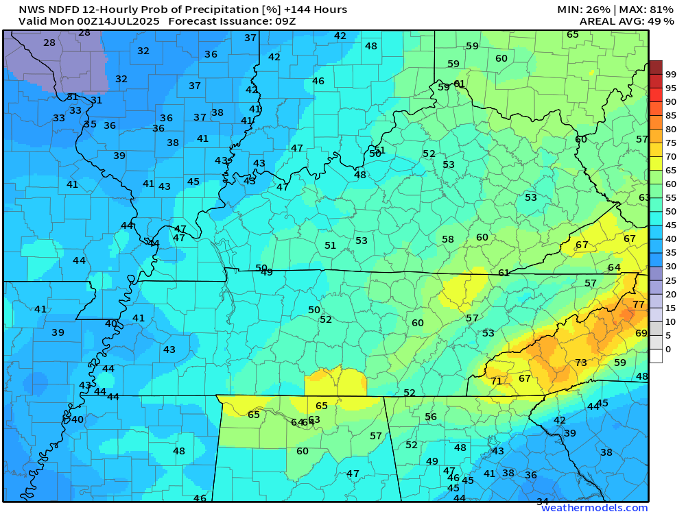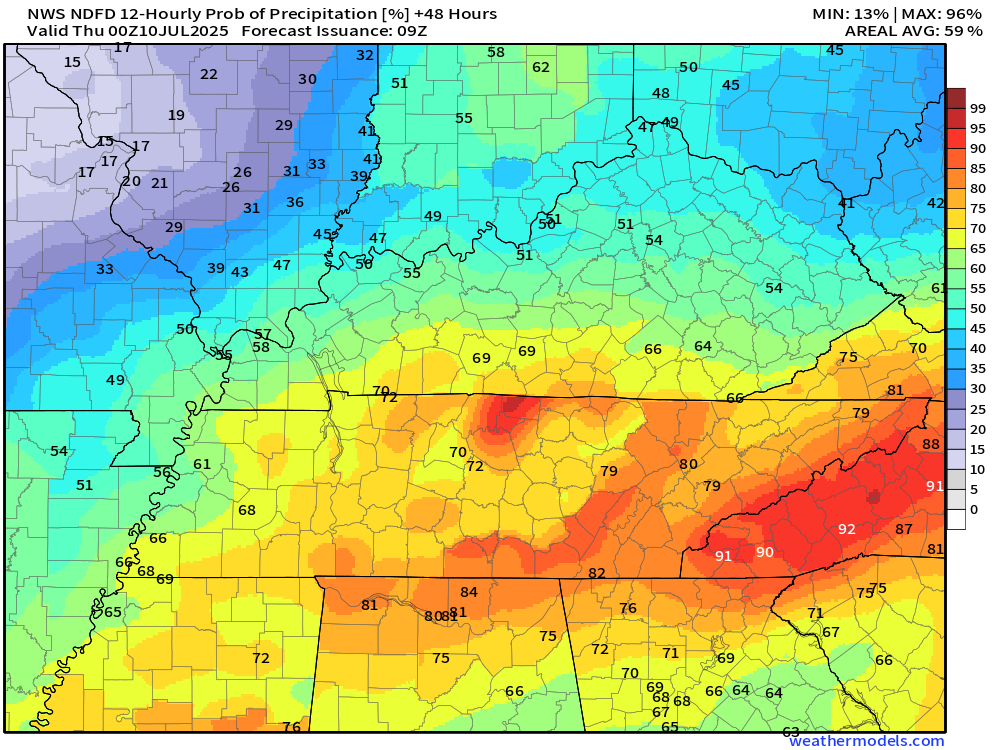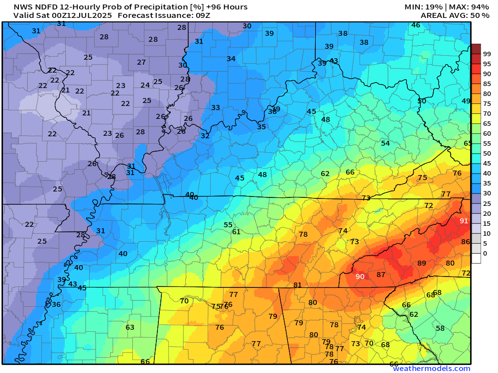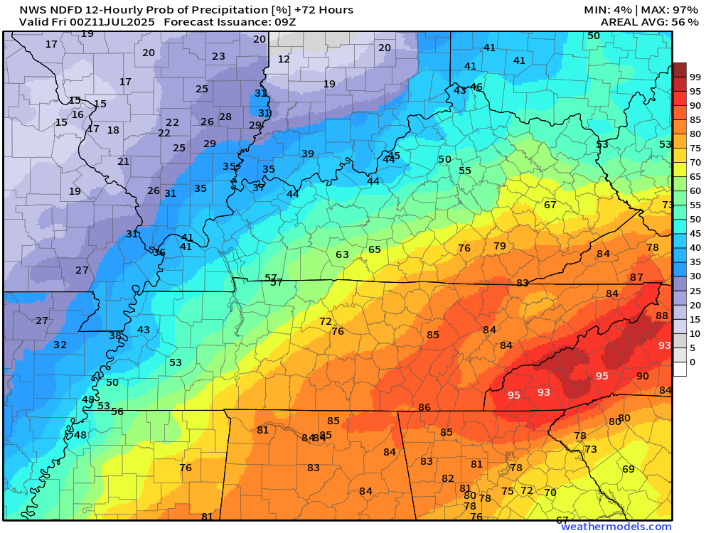 These numbers may vary a bit in the daily video.  I gave the average chance area-wide on the video update.